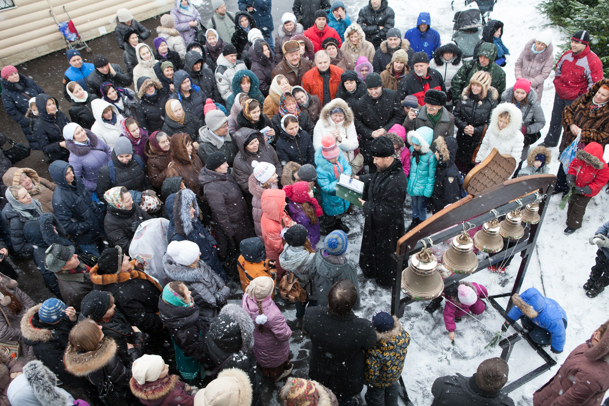 Ну, а на другой день, 12 января, после Литургии праздничные мероприятия продолжились фестивалем колокольного звона и концертом в воскресной школе. Специально для фестиваля на храмовом дворе установили дополнительную переносную звонницу. Выступающие – звонари различных московских храмов, выпускники Школы церковных звонарей и сам её руководитель Илья Дроздихин – продемонстрировали собравшимся своё мастерство, исполнив различные традиционные русские звоны: водосвятный, красный, венчальный звон; звон на крестный ход; встречный звон, звучащий во время встречи архиерея и других высоких гостей; московские перезвоны и, конечно, светлый, ликующий пасхальный трезвон! Выступления перемежались рассказами о разных типах колоколов, о традициях колокольного литейного дела и звонарного искусства на Руси. В заключение фестиваля все участники совместно, на двух звонницах, исполнили торжественный «Общий звон», после чего пригласили к колоколам всех детей, желающих попробовать себя в роли звонарей. А уже спустя полчаса ребят и их родителей ждал актовый зал школы 1174, где собрались юные певцы и артисты нашей воскресной школы, готовые блеснуть на сцене и порадовать зрителей своим талантом. И маленьким, и взрослым очень понравились небольшая театральная постановка «Мальчик и Рождество» и юмористическая музыкальная композиция «Лекция о том, почему медведь зимой спит». Никого не оставили равнодушными и выступления детского хора, а также многочисленные разнообразные музыкальные номера, исполненные учащимися младших курсов воскресной школы. По традиции, завершился праздник вручением детям рождественских подарков, обещанных ещё накануне Дедом Морозом. По домам расходились под тихо падающими на белую землю крупными хлопьями снега…
