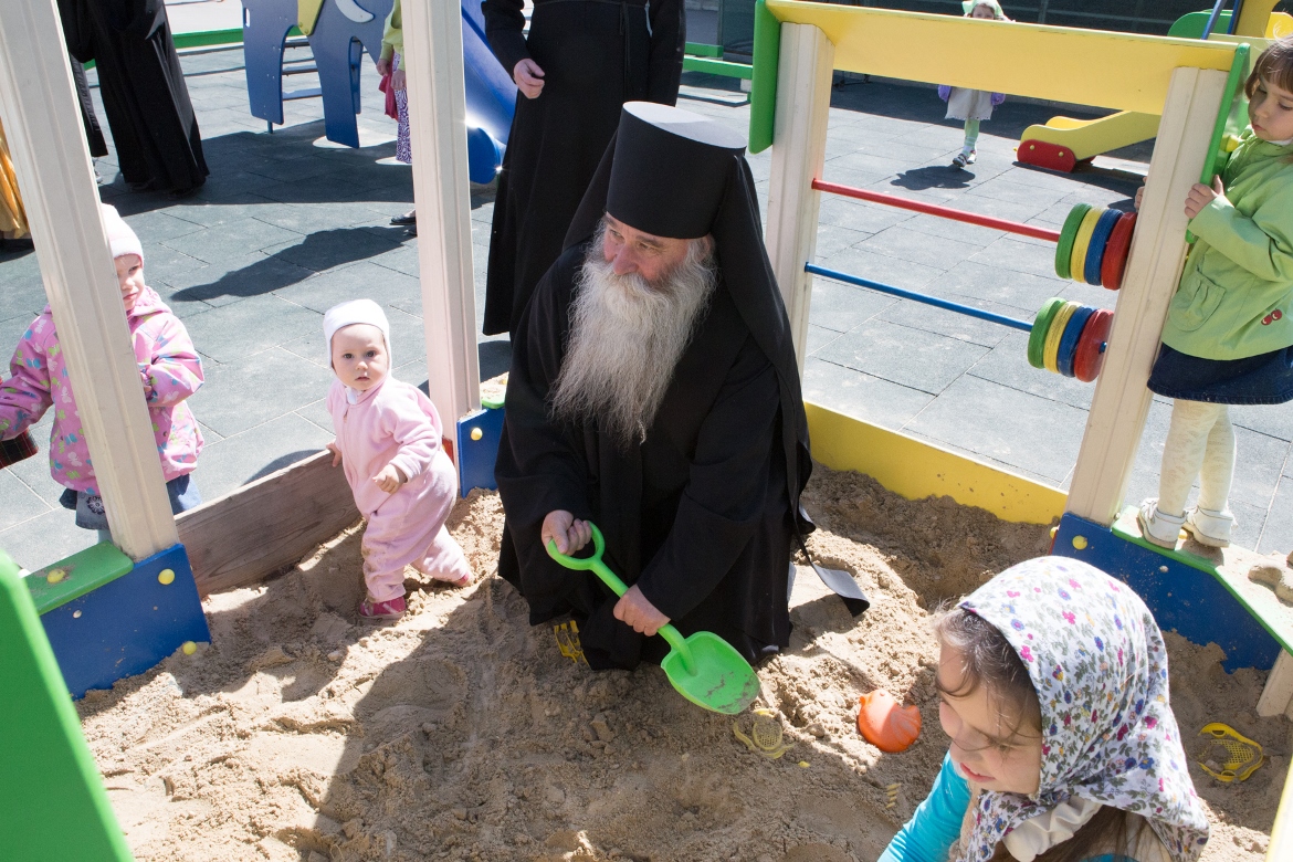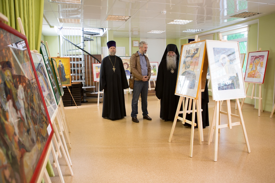 Затем владыка Феофилакт вместе с настоятелем и гостями храма прошёл по территории Подворья: побывал в здании воскресной школы, где осмотрел помещения театрально-концертного зала, учебных классов и трапезной, познакомился с посвящённой великому князю Димитрию Донскому выставкой рисунков детской художественной студии «Благовест» и посетил здание спортивно-оздоровительного комплекса, строительство которого было завершено специально к сегодняшнему дню.