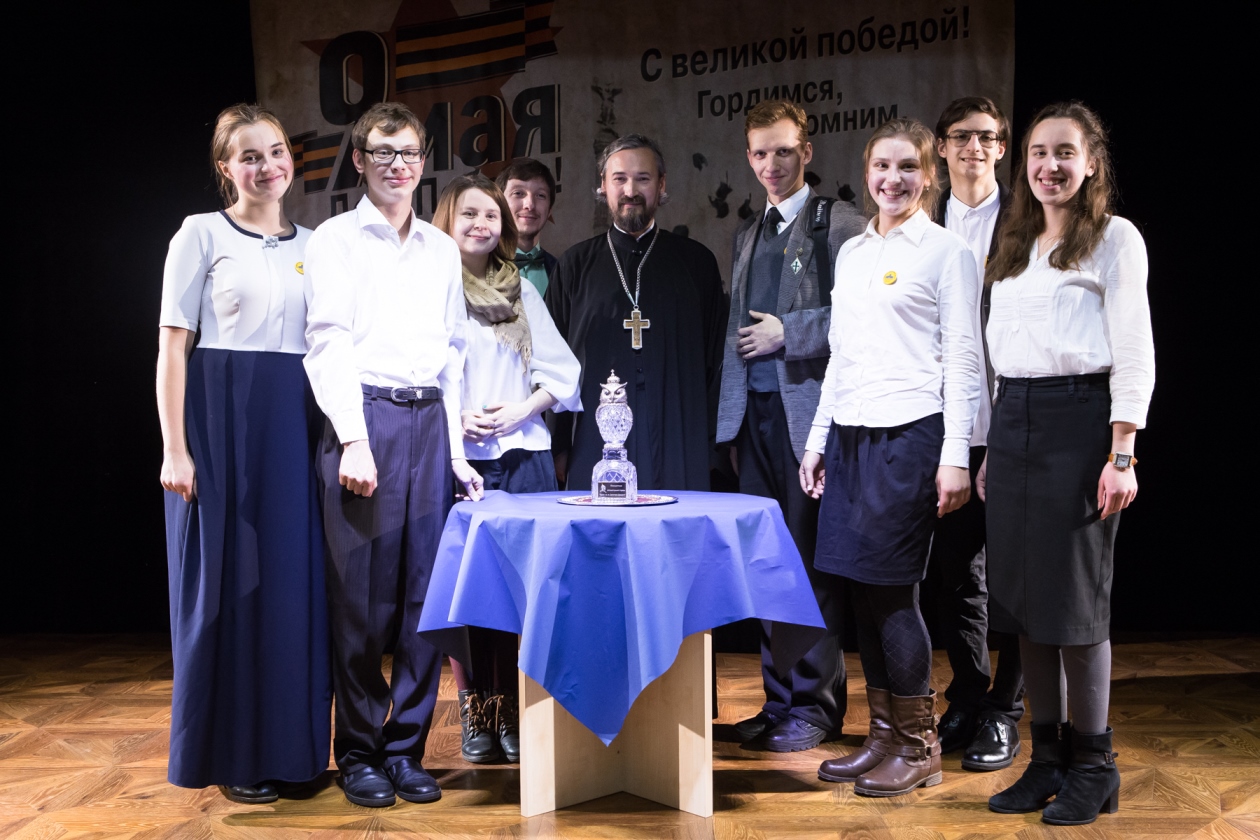 В шесть часов, согласно регламенту, программа турнира открылась представлением команд и членов жюри, в состав которого вошли прихожане нашего храма – заслуженные деятели науки, искусства и образования. Затем, после оглашения правил интеллектуального состязания, на сцене перед публикой предстал переходящий приз турнира – сияющая в свете софитов Бриллиантовая Сова, традиционный символ победы в телевизионной игре «Что? Где? Когда?»