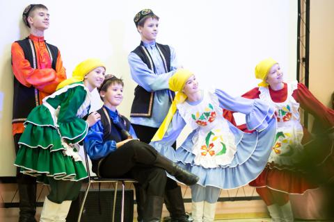 Концертную часть программы всегда хочется сделать яркой и разнообразной. По уже сложившейся традиции, открывали её песни в исполнении нашего младшего хора, затем был показан впечатляющий цирковой номер с обручами, а в заключение – весёлый татарский танец, подготовленный коллективом «Подснежник».