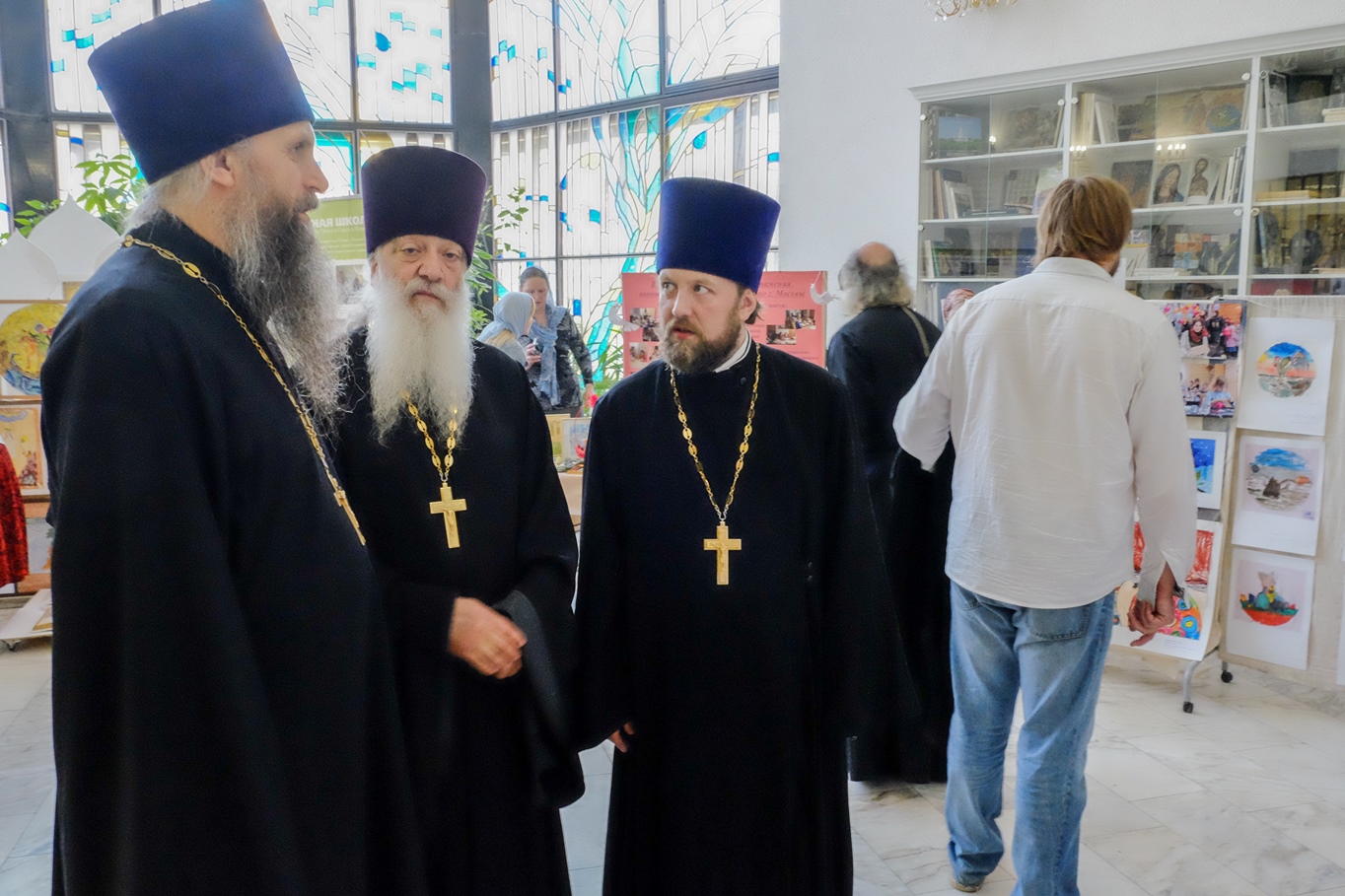 В фойе школы в день проведения Пасхального фестиваля была представлена обширная выставка детского художественного и прикладного творчества, а также фотоработы, отражающие жизнь воскресных школ Юго-Западного викариатства Москвы.