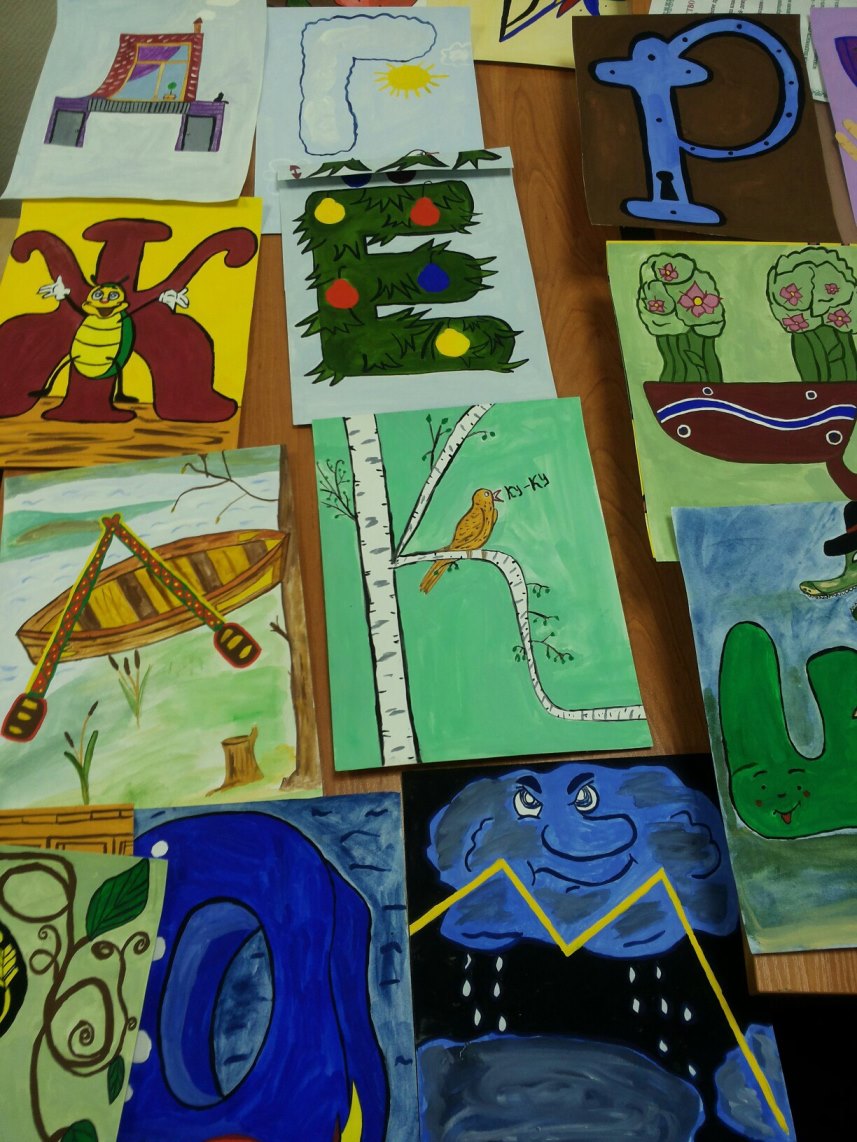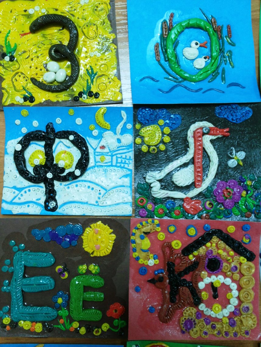 В группе четырёхлетних детей знакомство с буквами происходит через активную рукотворную деятельность. Вместе с присутствующими на занятиях родителями ребятишки конструируют, лепят, рисуют, изготавливают персонажей обучающей игры, в ходе которой познают русскую азбуку: они буквально создают её своими руками! Благодаря ассоциативному сходству поделок с образами печатных букв, дети интуитивно воспринимают начертания букв и их звуковые соответствия.