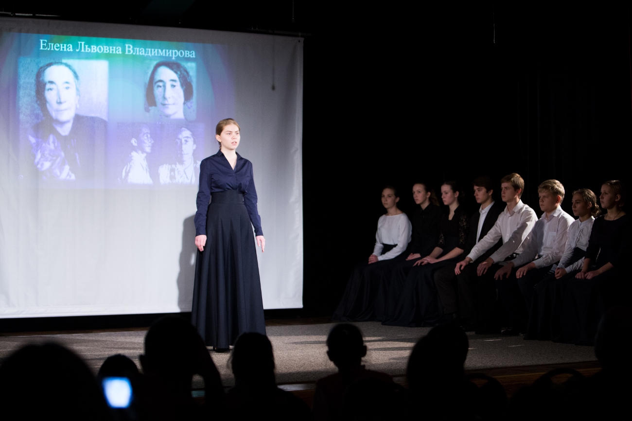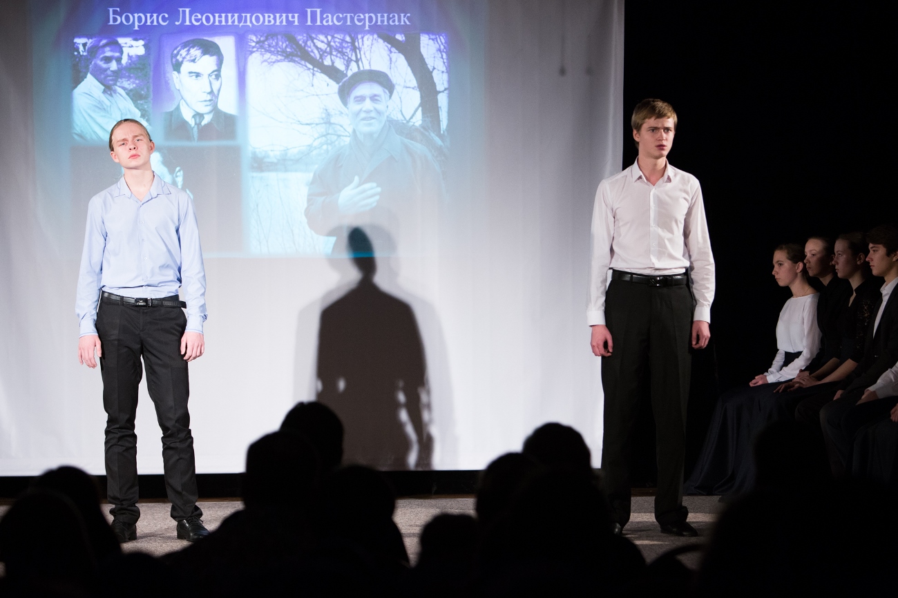 Но имена мужчин и женщин, чьи поэтические голоса звучали в этот вечер со сцены, большей частью хорошо известны. Со старых фотографий на экране смотрели на нас те, кому Господом были даны великие дары – дар слова и дар мужества. Лидия Гинзбург и Варлам Шаламов, Анна Ахматова и Осип Мандельштам, Надежда Надеждина и Борис Пастернак… Они передали дух той трагической эпохи в пронзительных стихах и рассказах, и юные артисты, читающие эти произведения, на несколько мгновений словно символически заступали на их пост. Ребята даже внешне становились вдруг похожи на своих героев, как будто проживая в течение кратких минут часть их жизни, – удивительно достоверно, правдиво, проникновенно звучали из уст юношей и девушек строки, написанные несколько десятилетий назад.