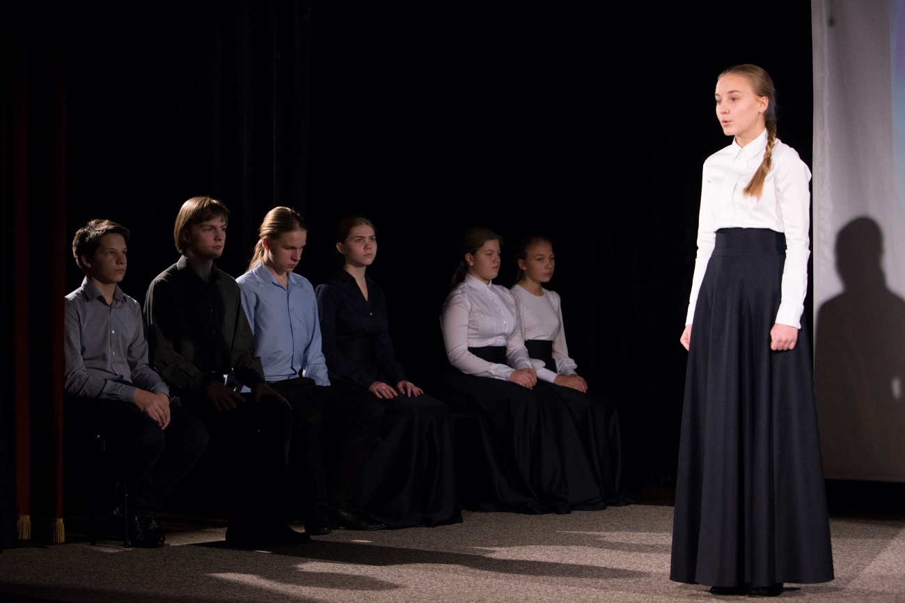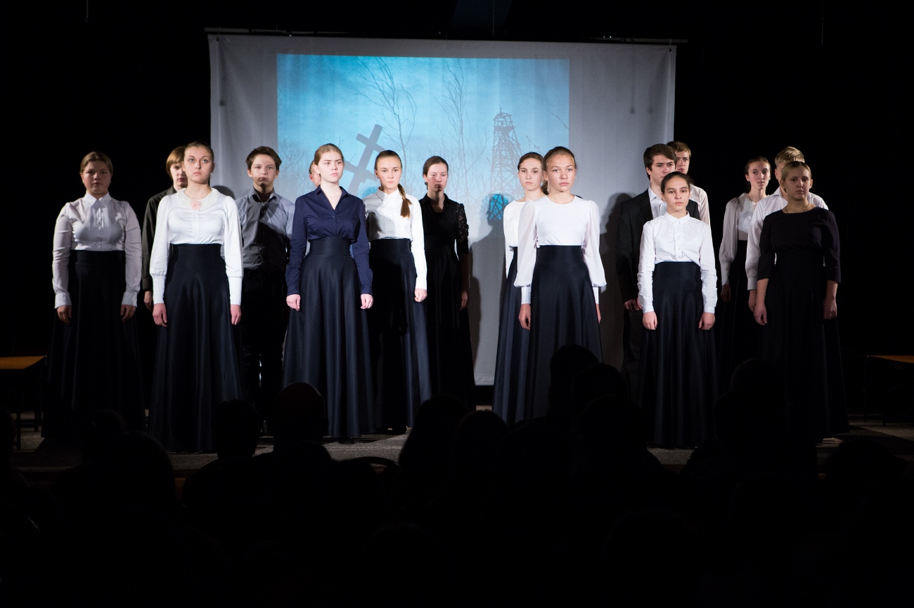 В минувшее воскресенье, 30 октября, в День памяти жертв политических репрессий, в театрально-концертном зале «Восход» воскресной школы прошло новое выступление наших друзей – Детской театральной студии «Лик» под руководством заслуженной артистки России, актрисы Академического Малого театра Инессы Геннадьевны Рахваловой. Зрителям была представлена литературно-драматическая постановка «Поэты ГУЛАГа».