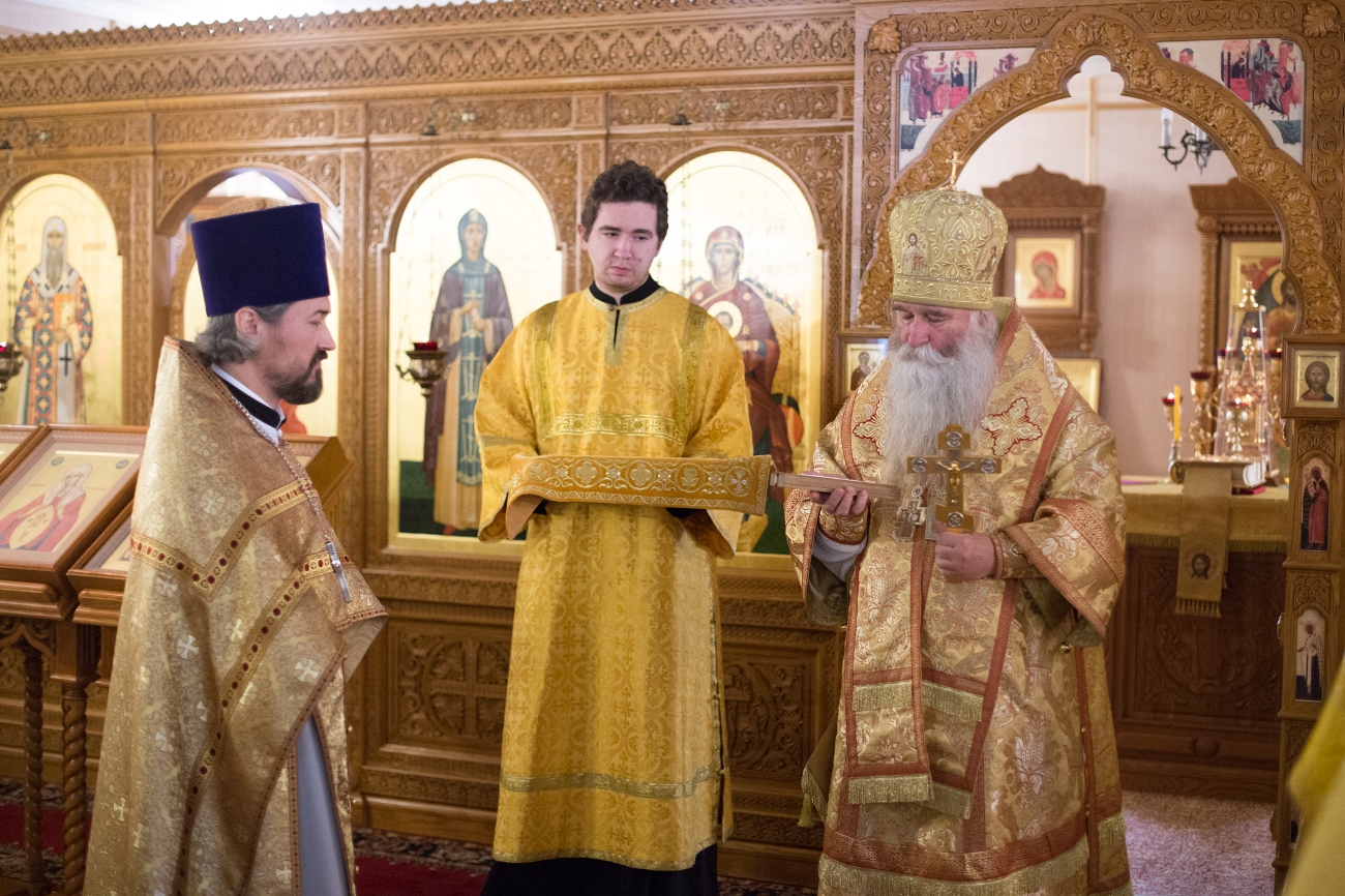 В завершение Богослужения было провозглашено многолетие Святейшему Патриарху Кириллу, Преосвященнейшему епископу Феофилакту, настоятелю, братии, прихожанам храма и всему освященному собору.
