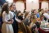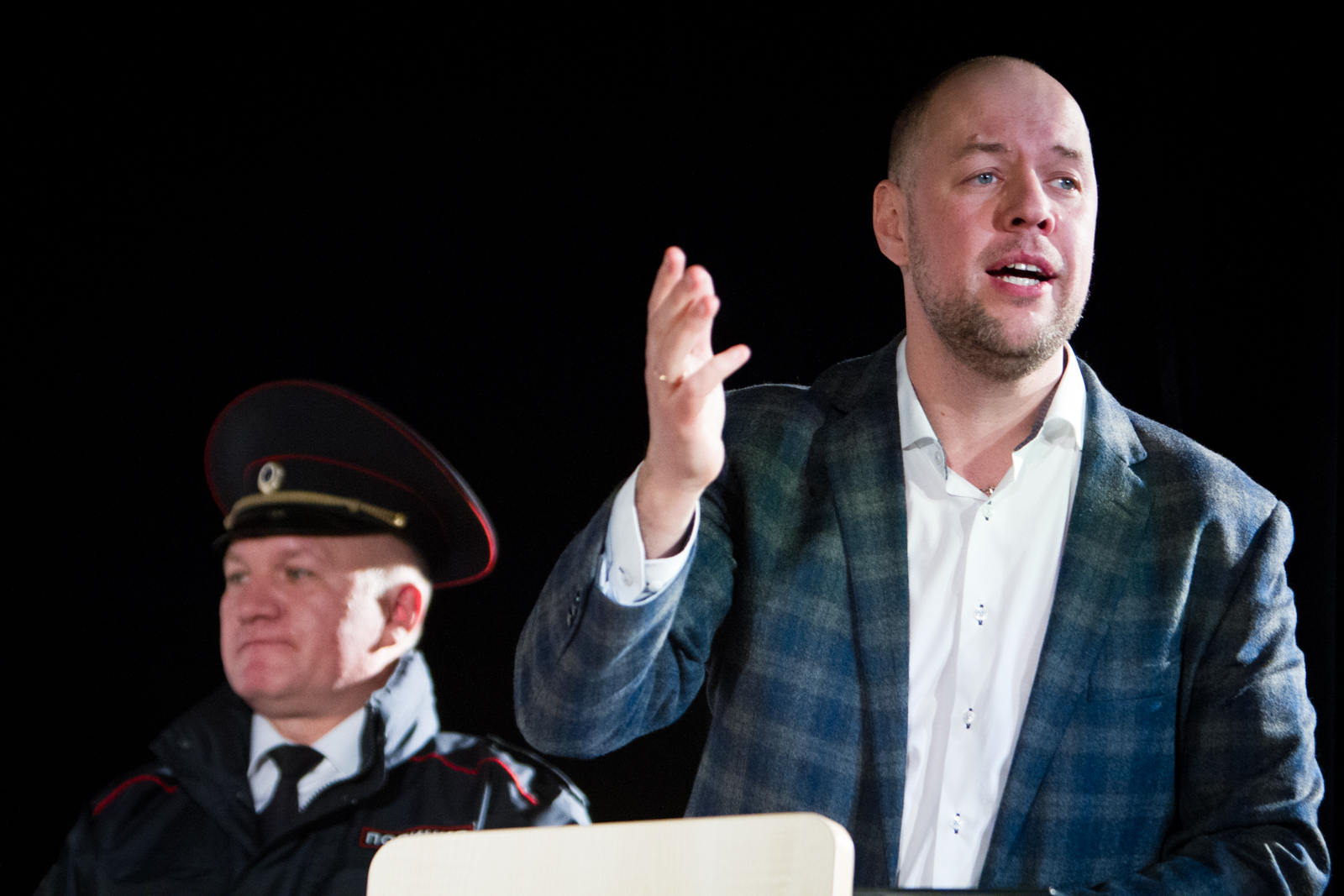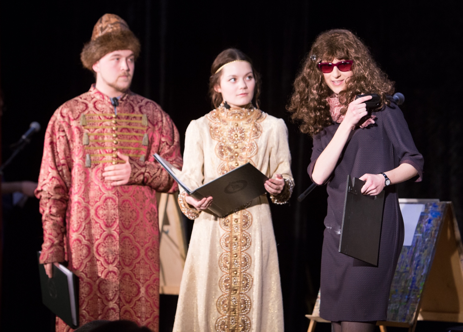 Наконец, когда все собрались за столами, на сцене появились ведущие в нарядных исторических костюмах и, поприветствовав и поздравив гостей с Рождеством Христовым, объявили о главной интриге вечера: ожидаемом приезде (но – инкогнито!) некого известного режиссёра, который имеет чаяние снять у нас на Подворье фильм в стиле неореализма при участии прихожан и сотрудников храма.