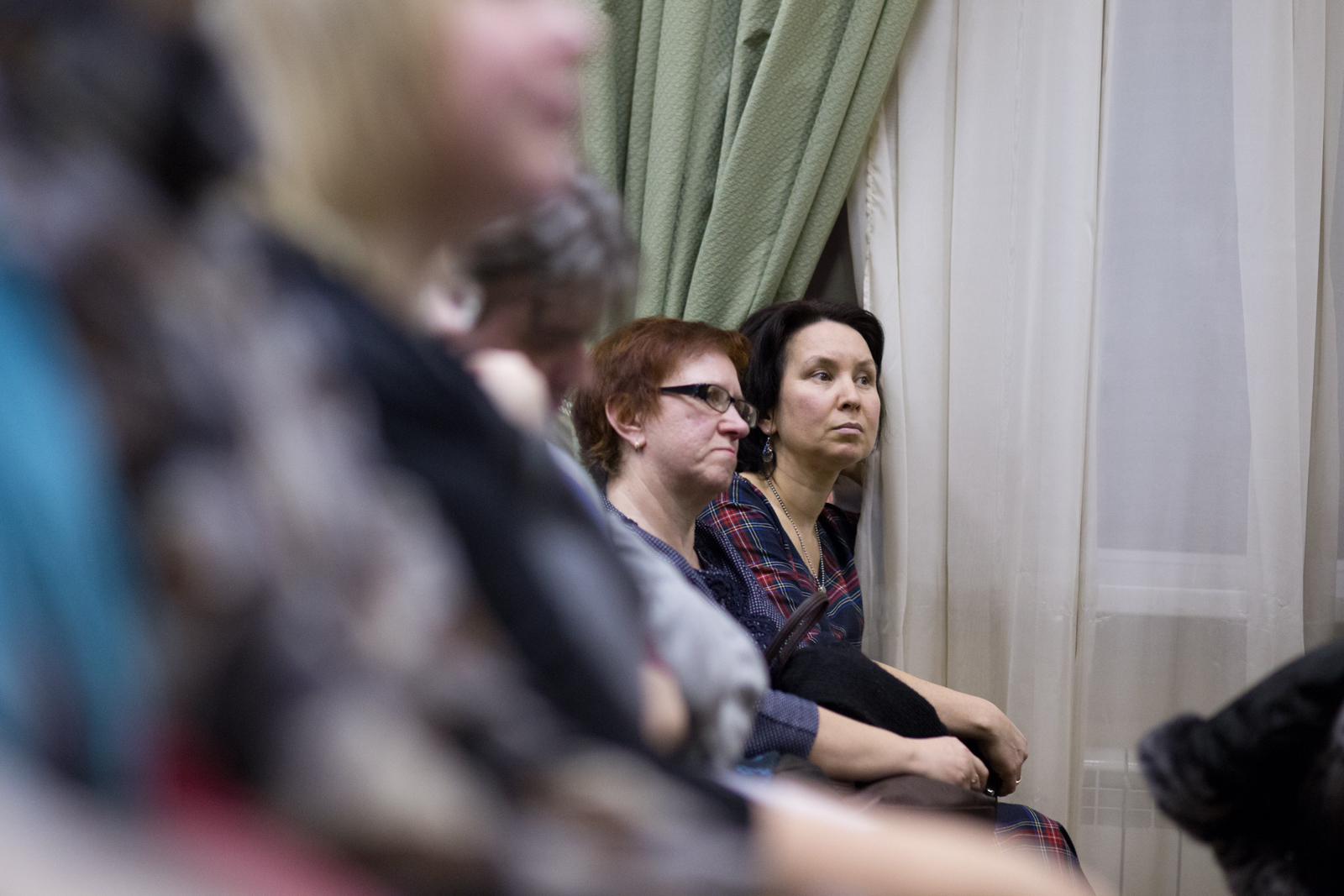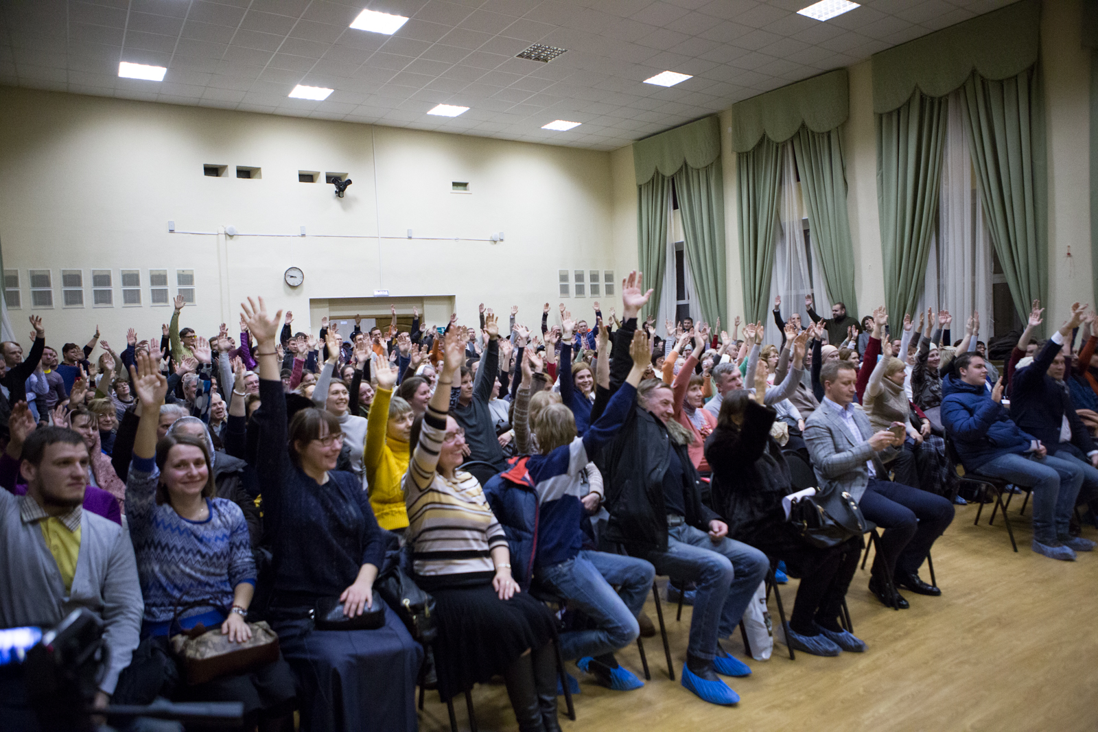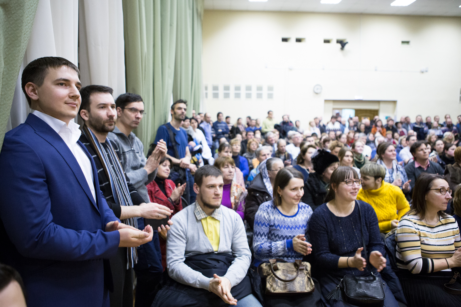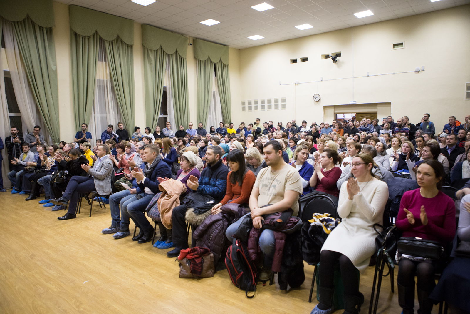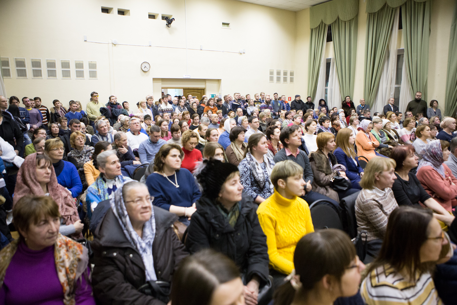 Уже за полчаса до начала слушаний зал был переполнен: пришедшие не только заняли все сидячие места, но и плотными рядами встали за ними. Конечно, среди присутствующих было очень много прихожан нашего храма – некоторые пришли целыми семьями; но были, безусловно, и другие жители района.