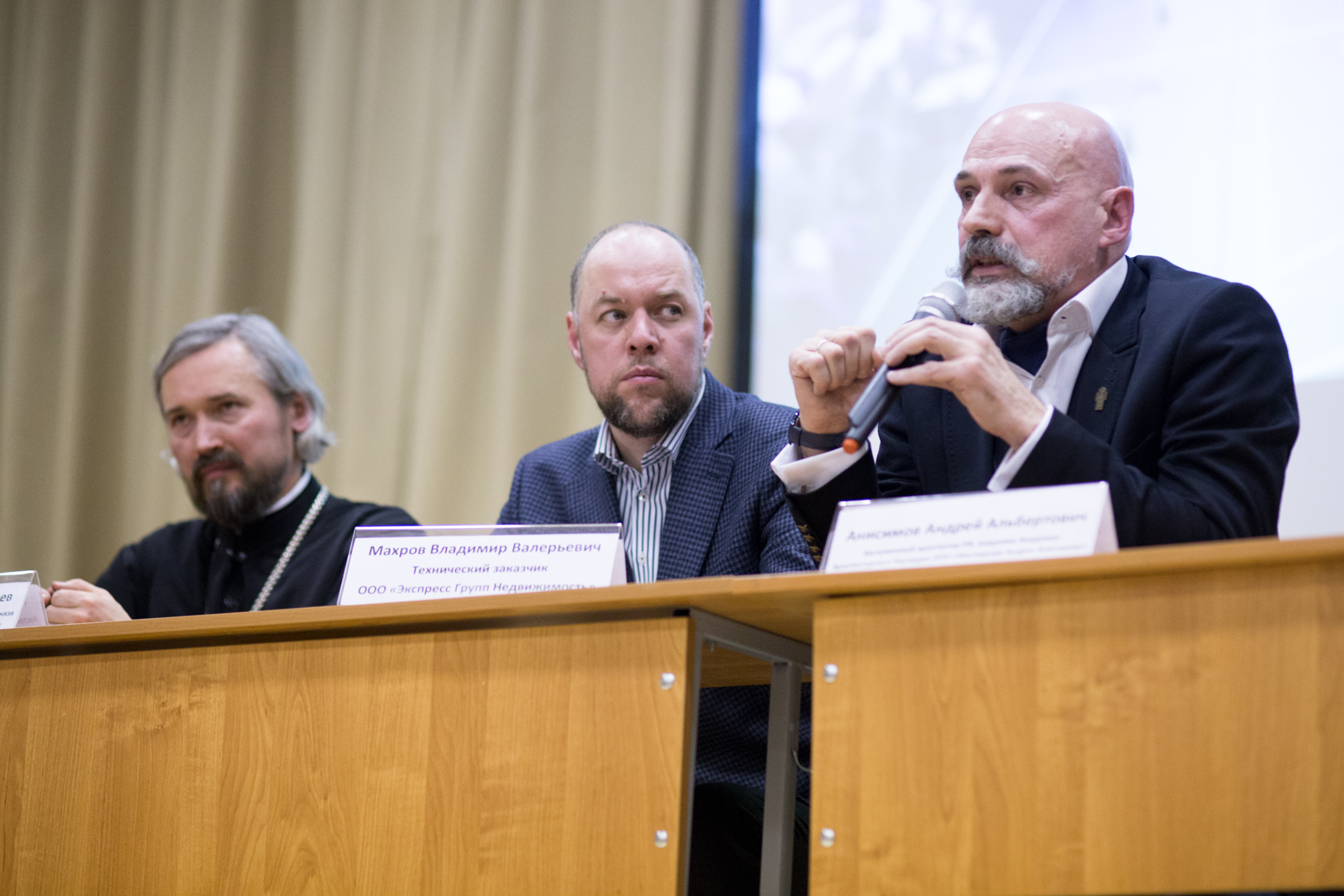Архитектор А.А. Анисимов сообщил присутствующим о некоторых предполагаемых параметрах проектируемого комплекса, о возможностях его встраивания в существующий на месте природный ландшафт и сохранении прилегающего к территории строительства лесного массива. Из его выступления, в частности, стало ясно, что предполагается свободный доступ жителей и гостей района на территорию комплекса, которая будет включать в себя, кроме храмовых и социальных строений, красиво оформленные прогулочные зоны и даже специально оборудованные места для спортивных занятий.