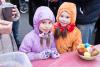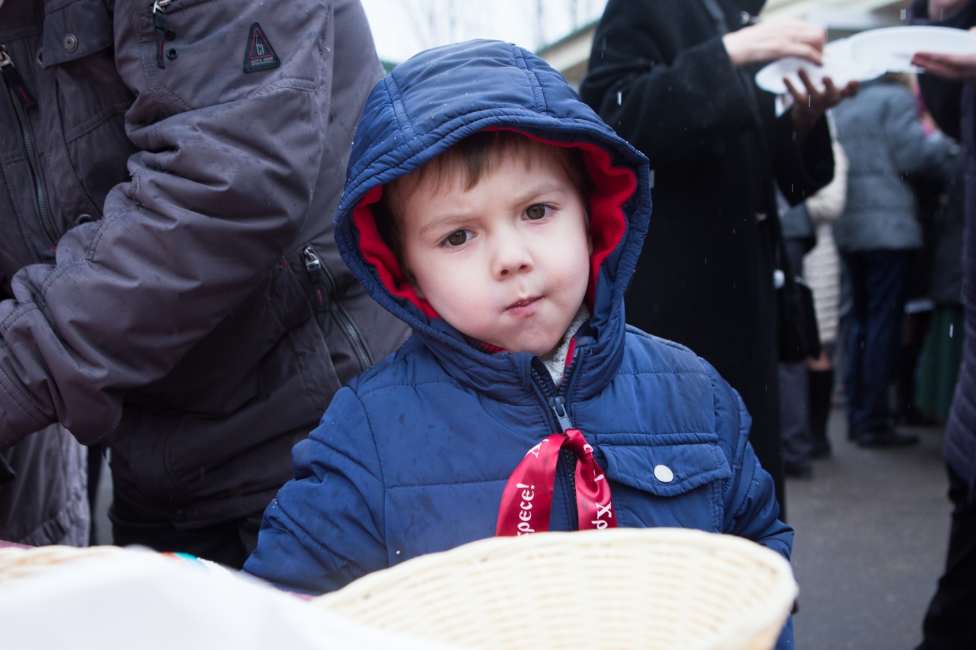 И только после этого с внезапно потемневшего неба начали сыпаться капли мелкого дождика, впрочем, не помешавшего нашим алым шарам дружно взлететь к облакам. Провожая их взглядами, участники крестного хода направились в обратный путь – на родное Подворье, где их и всех гостей, заглянувших к нам в этот праздничный день, встречали накрытые столы с традиционным пасхальным угощением. Несмотря на уже разыгравшийся дождь, все с удовольствием пробовали разнообразные куличи, задорно разбивали крашеные яйца, согревались душистым травяным чаем и – непрестанно радовались!