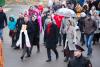Возглавляемая священнослужителями яркая колонна, собравшая как взрослых прихожан, так и детей всех возрастов – от лежащих в колясках до старшекурсников нашей воскресной школы – двинулась в путь, вслед за как будто плывущими впереди иконами и хоругвями, и на протяжении всего шествия не смолкало пение пасхального тропаря, перемежающегося дружным возглашением «Христос Воскресе! – Воистину Воскресе!».