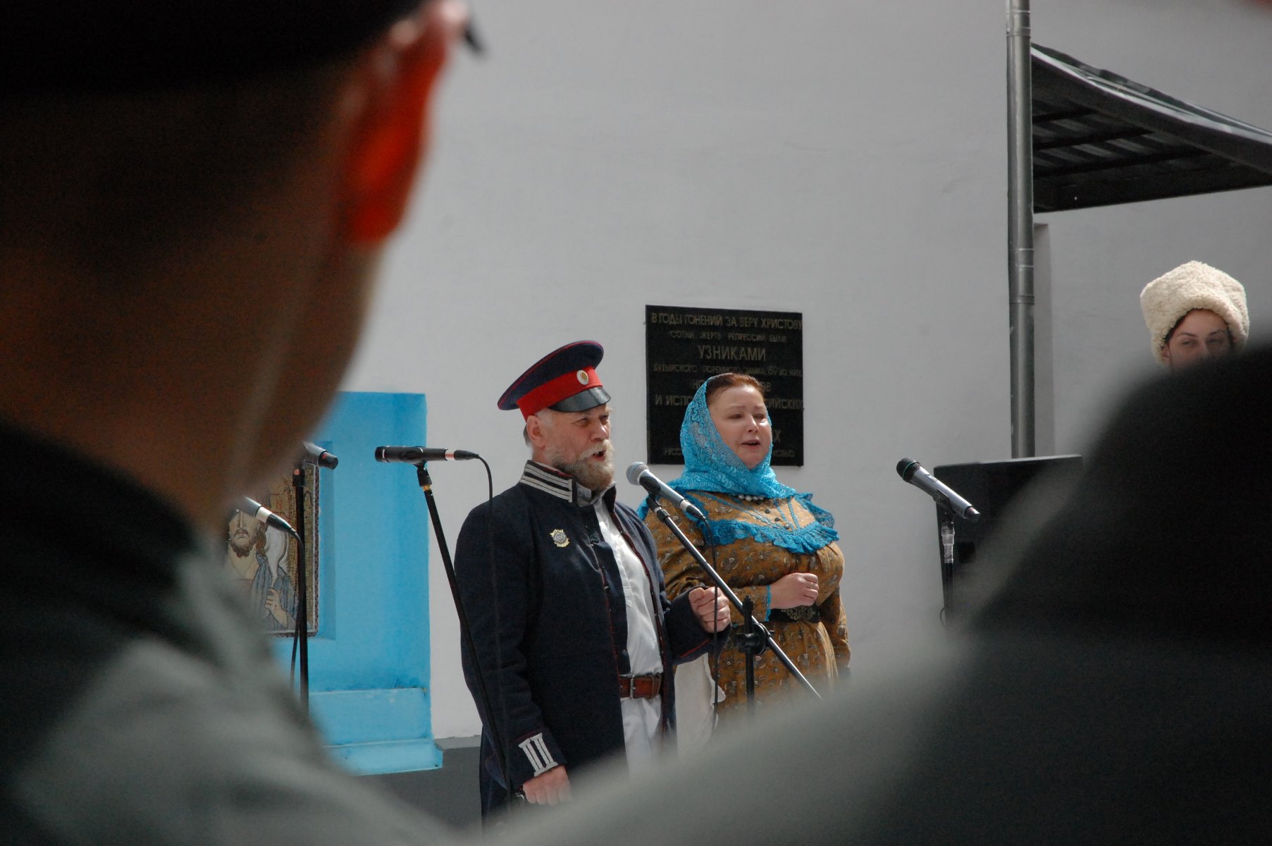 Отец Андрей, благословив всех, отслужил молебен и обратился к присутствующим с пастырским словом – сначала в самом храме, а затем – выйдя на сцену, которую смастерили для нашего выступления прямо у входа в храм, чтобы было видно зрителям, находящимся в застенках. А там публика непростая: осуждённые за тяжкие преступления, лица разных национальностей и религий. Некоторые из них что-то громко выкрикивали, словно бы не обращая на нас внимания.