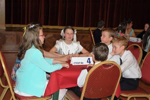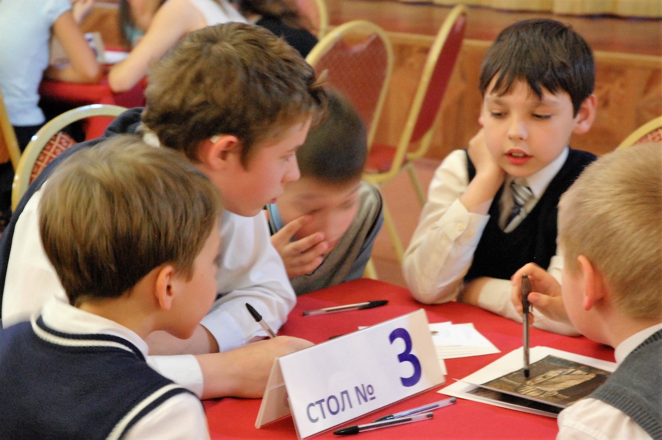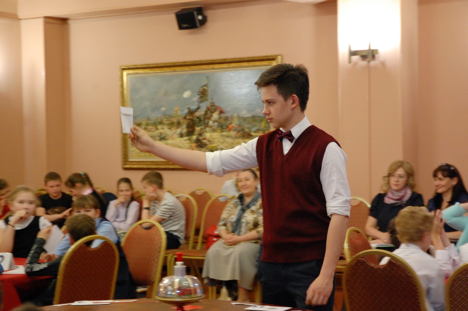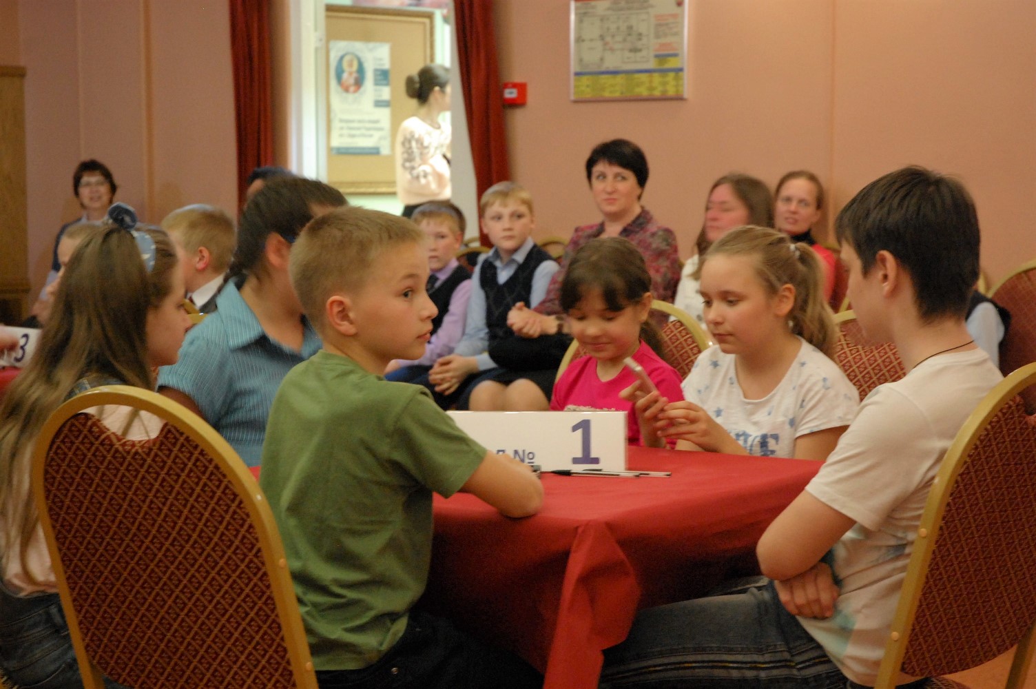 24 мая 2017 года, накануне дня празднования Вознесения Господня, театрально-концертный зал нашей Воскресной школы вновь превратился в арену интеллектуального турнира «Что? Где? Когда?». На этот раз за игровыми столами собрались учащиеся четвёртых классов из пяти общеобразовательных школ Северного Бутова – тех, где родители выбрали для своих детей в качестве учебного модуля комплексного курса «Основы религиозных культур и светской этики» (ОРКСЭ) предмет «Основы православной культуры». Соответственно, и вопросы, над которыми предстояло размышлять командам в продолжение состязания, были рассчитаны именно на понимание ребятами контекста православной духовной традиции.