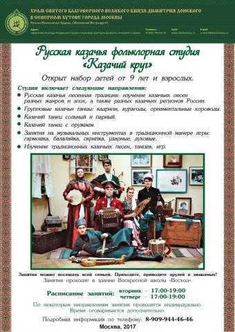 Русская казачья фольклорная студия «Казачий круг» приглашает детей от 9 лет и взрослых!