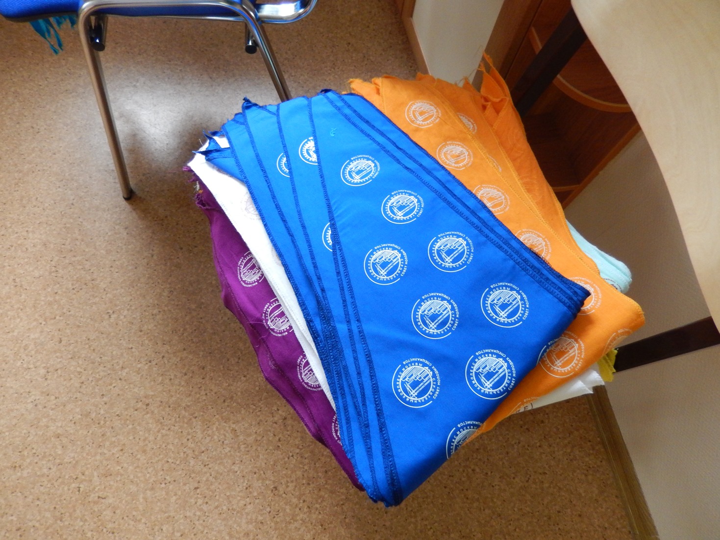 В первые минуты праздника ведущие пригласили на сцену капитанов команд. Да-да, не удивляйтесь – в этот день всё было необычным! Для ребят был придуман детский квест, и капитанами команд стали не учителя (которые, конечно, тоже присутствовали в зале), а прошлогодние выпускники Воскресной школы. Каждому капитану выдали маршрутный лист и платки определённого цвета – на всех членов команды. Например, команда «Баклажаны» выступала в фиолетовых платках, «Яблоки» – в зелёных, как незрелая антоновка, а «Апельсины» красовались ярко-оранжевыми косынками…