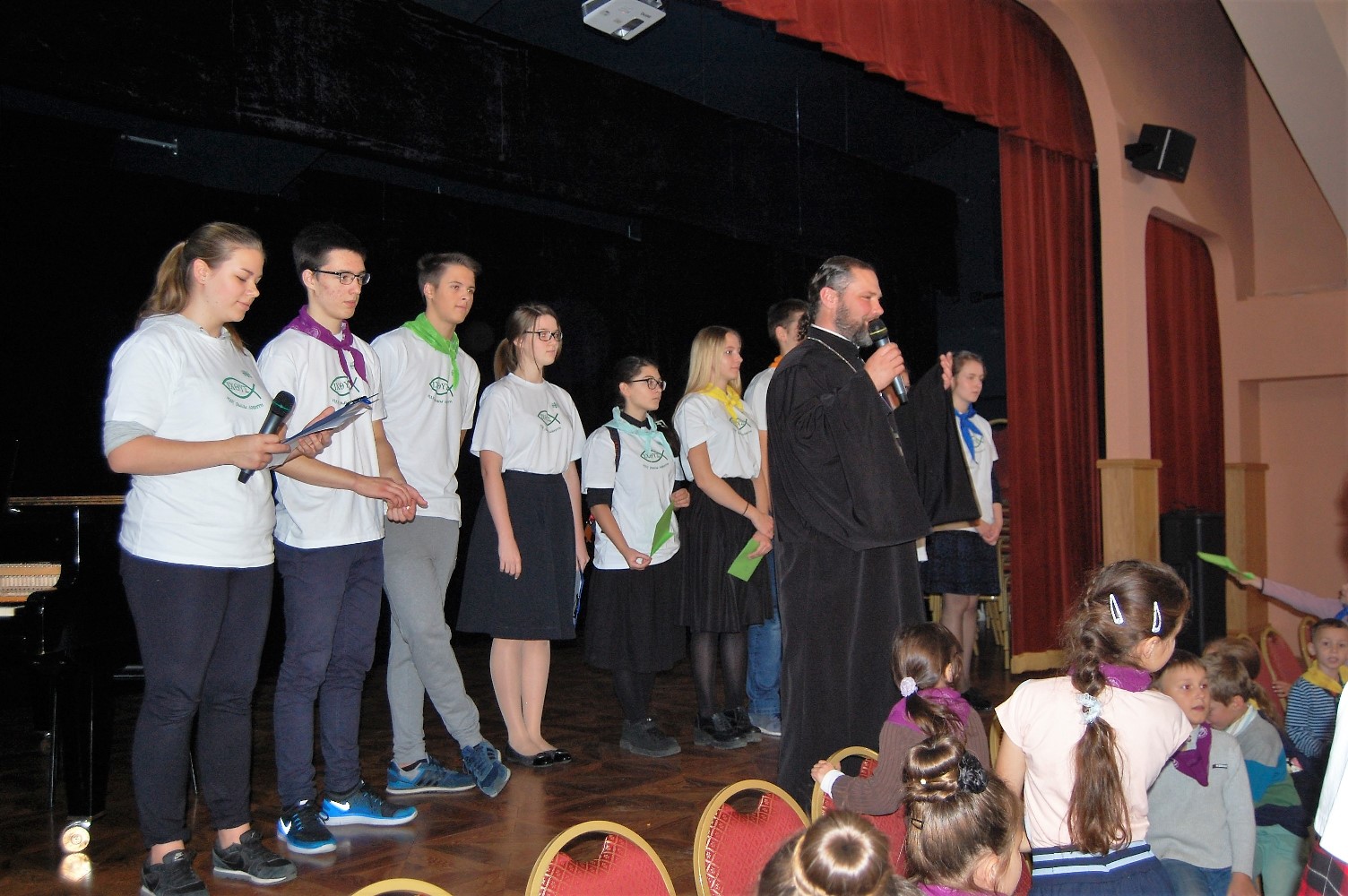 Когда все команды, успешно пройдя испытания и преодолев препятствия, вновь собрались в театрально-концертном зале, ведущие со сцены объявили результат – оказывается, каждая команда по частям «собирала» во время путешествия цитату из Первого соборного послания святого апостола Иоанна Богослова» – «Бог есть любовь!»