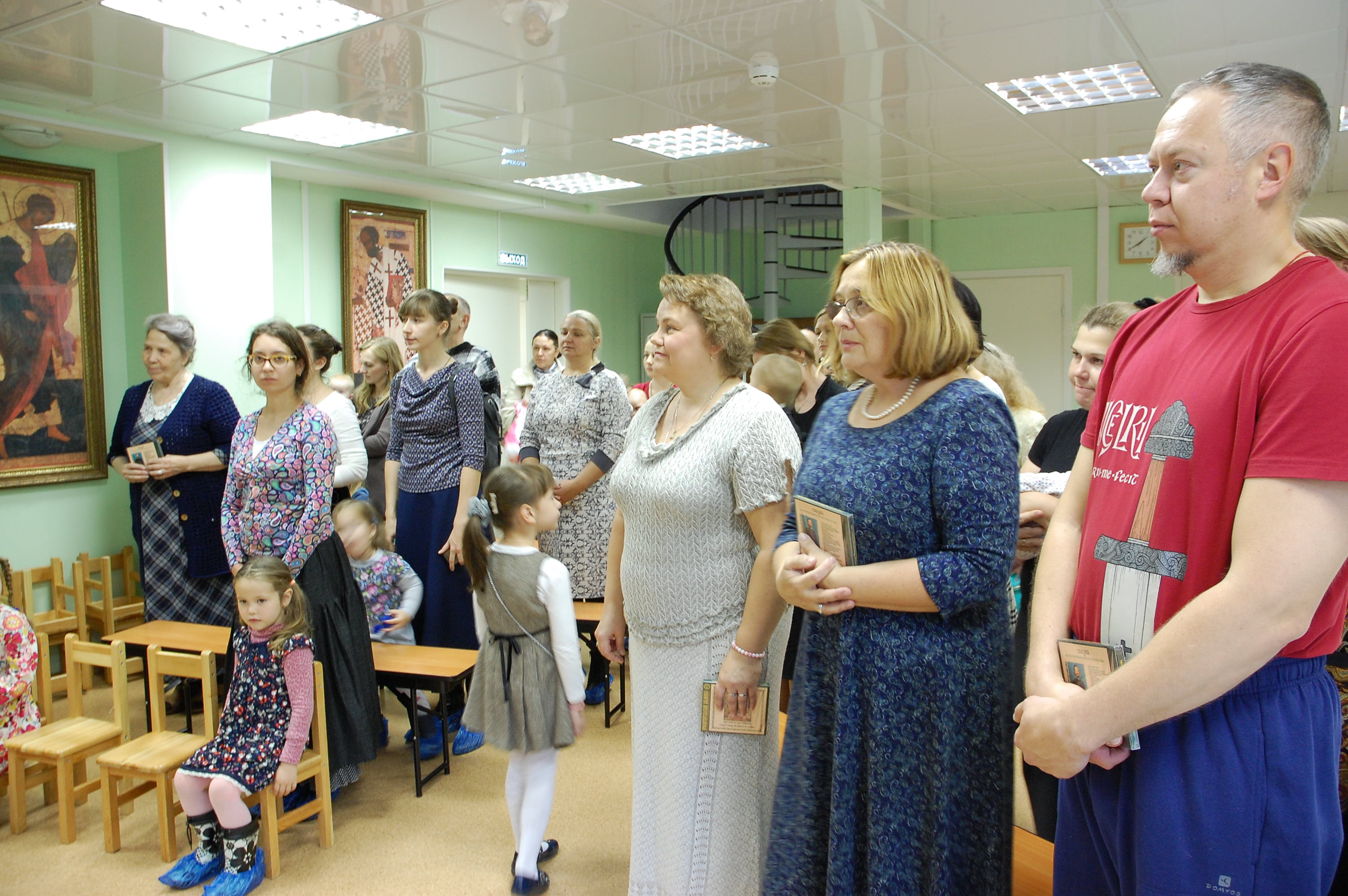Отец Андрей тепло поздравил педагогов, родителей и первоклассников с Днём учителя и преподнёс каждому педагогу в подарок диск с записью своей сказки «Про богатыря Ивана и силу Божьего Слова».