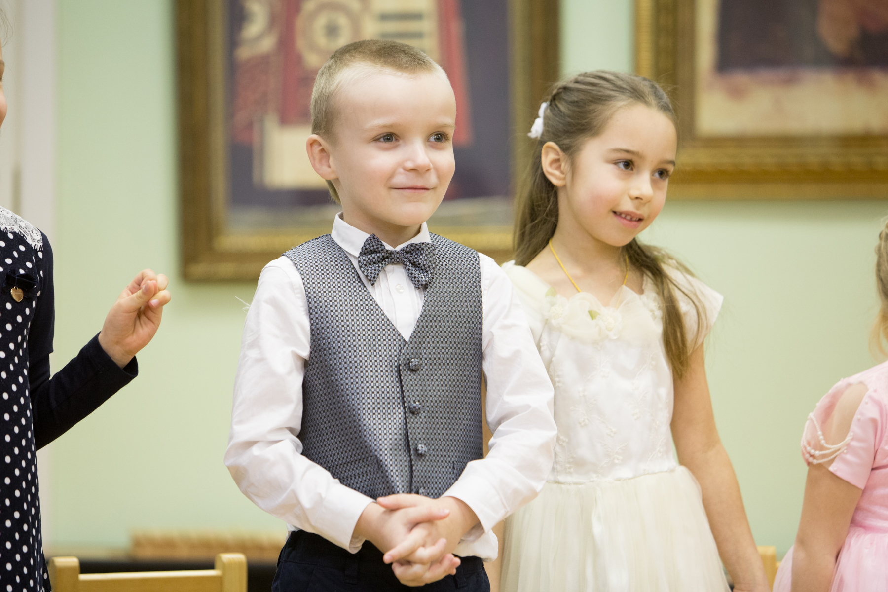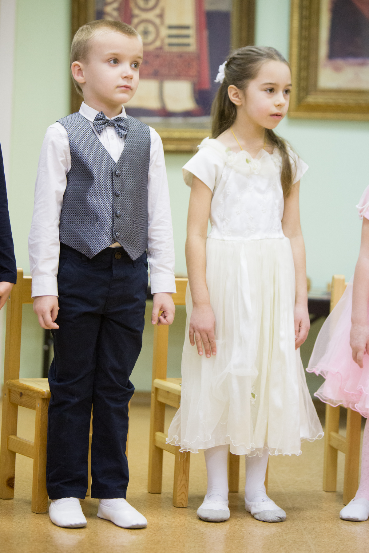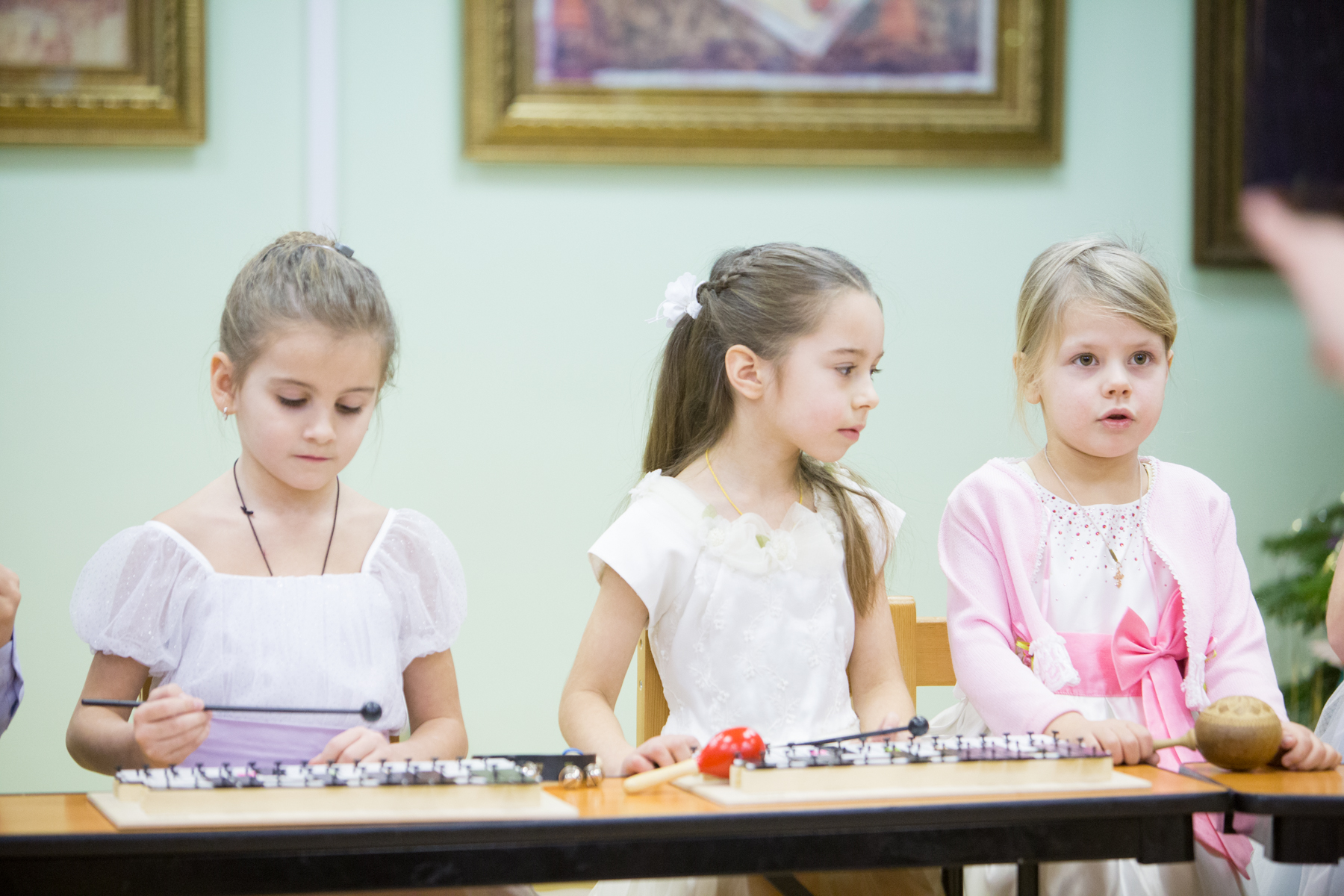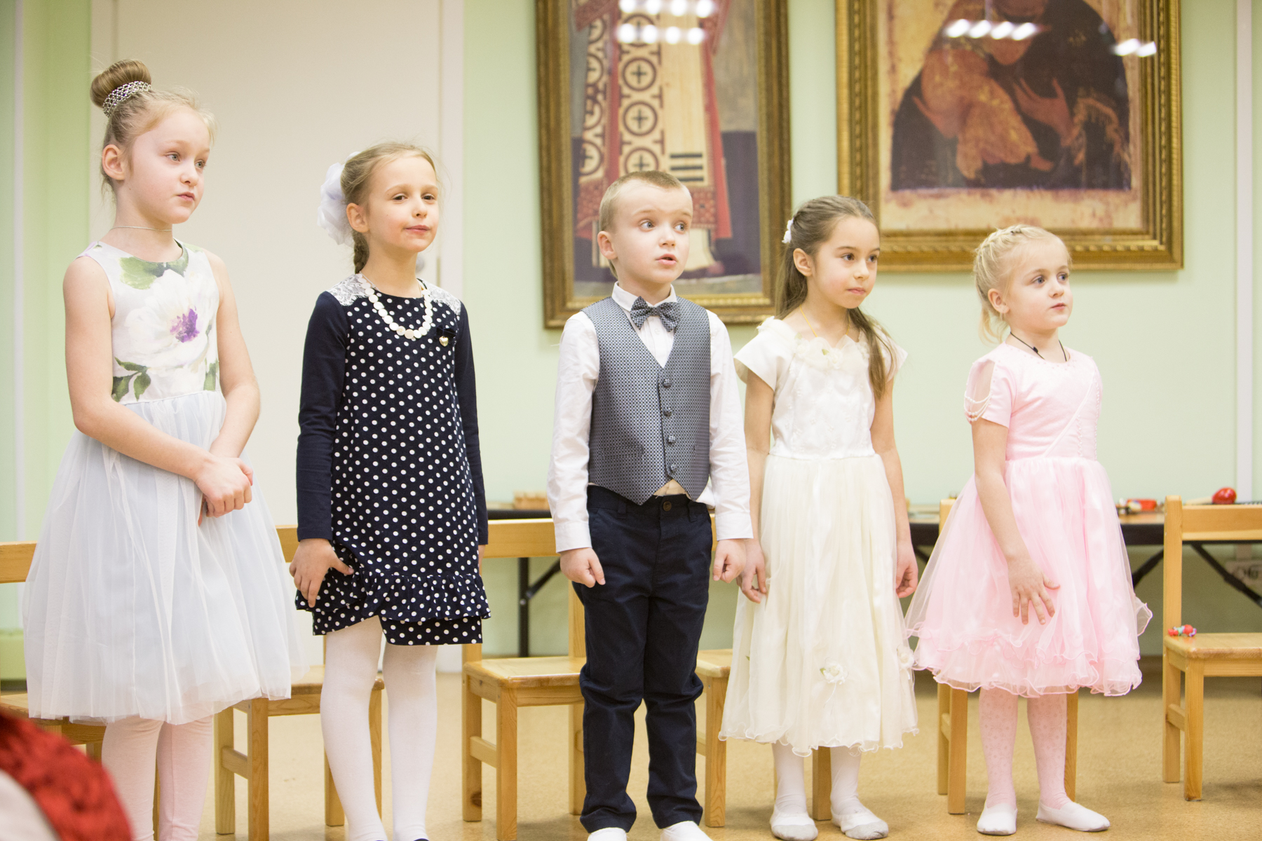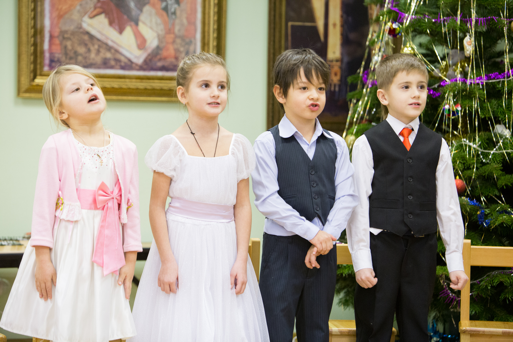 Концерт, исполнителями которого выступили пяти- и шестилетние малыши, начался с марша из балета П.И. Чайковского «Щелкунчик». После вступительного слова директора лицея протоиерея Андрея Алексеева, совместной молитвы и исполненных с неподдельным усердием песен про ёлочку, медведя и доброго жука, ребята показали зрителям небольшое литературно-музыкальное представление – сцену посещения пастухов Ангелом, возвестившим пришествие в мир Спасителя. Действие сопровождалось рассуждениями о смысле рождественского чуда: «Земля подарила Младенцу пещеру, Ангелы – своё пение, а мы Его будем славить!».