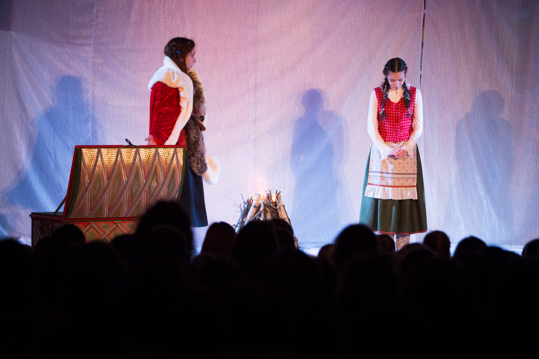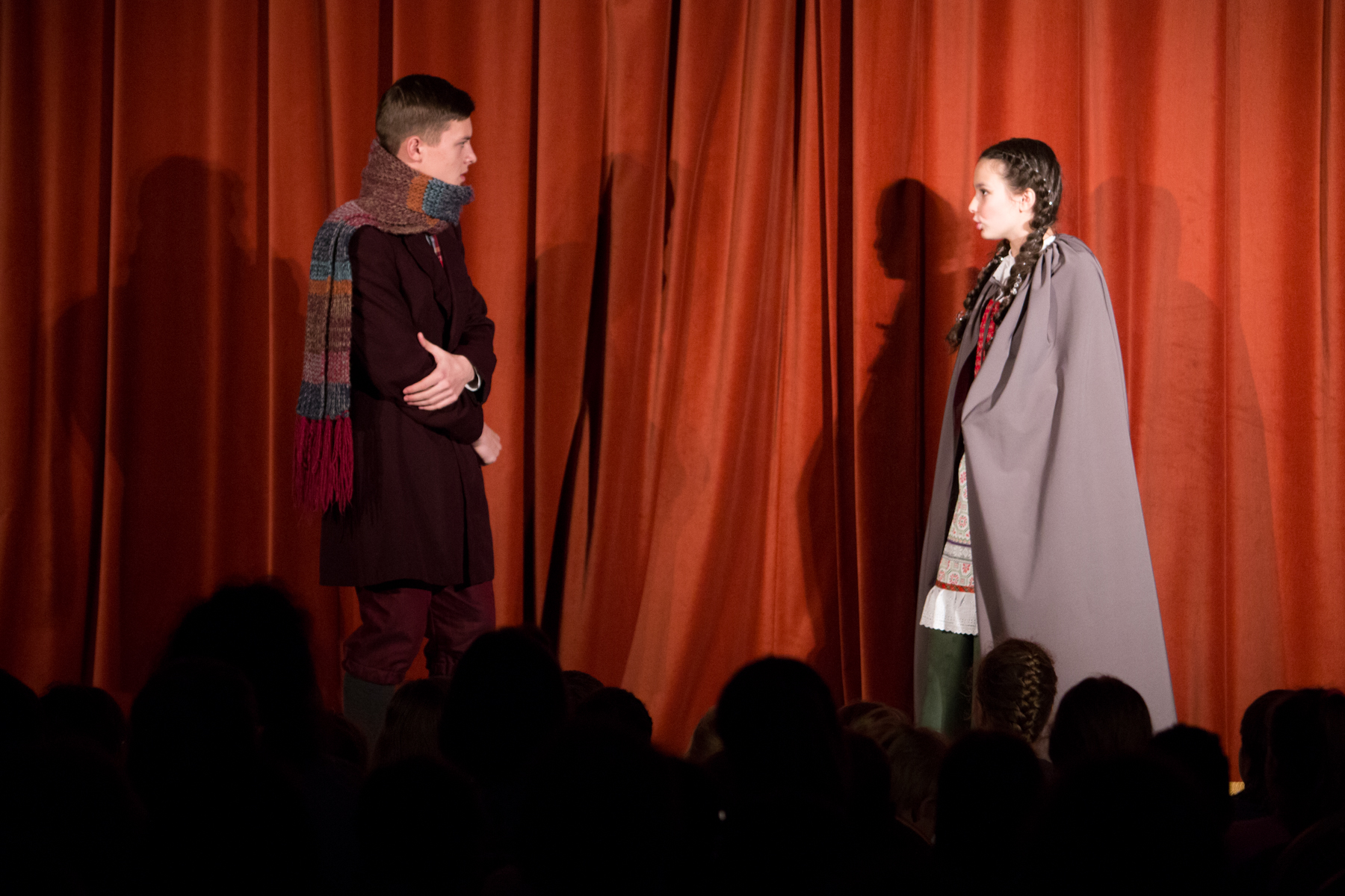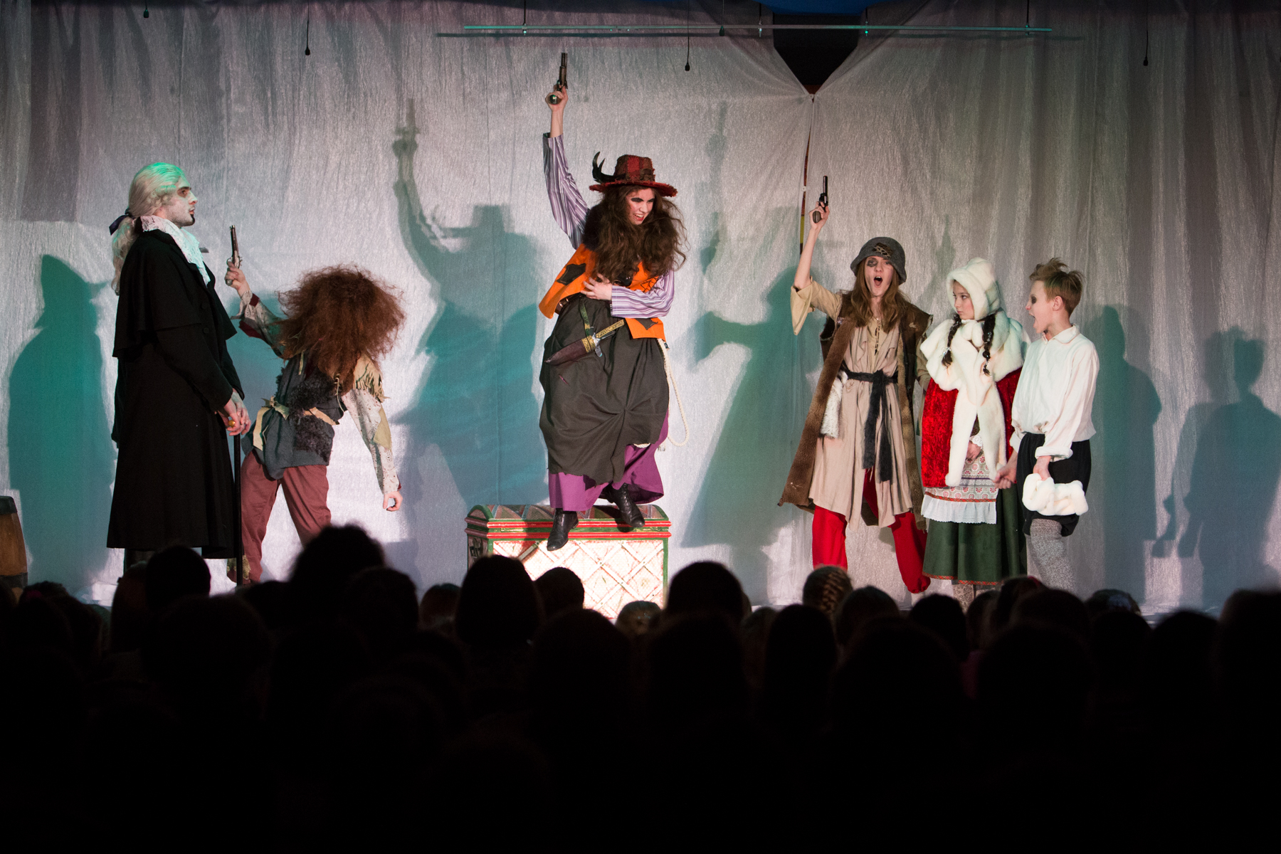 То, что желающих посмотреть спектакль не получится разом вместить в наш зал на двести с лишним мест, предполагалось заранее – поэтому на 7 января запланировали два показа: дневной и вечерний. Но оказалось, что количество зрителей всё-таки превысило ожидания: и днём, и вечером пришлось ставить в зале дополнительные скамьи и стулья, а зрители всё прибывали – в результате многие родители, усадив детишек (в тесноте, да не в обиде!), остались мужественно стоять в проходах.
