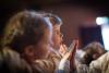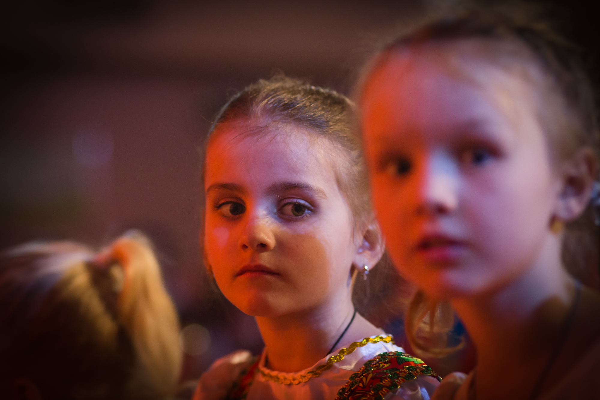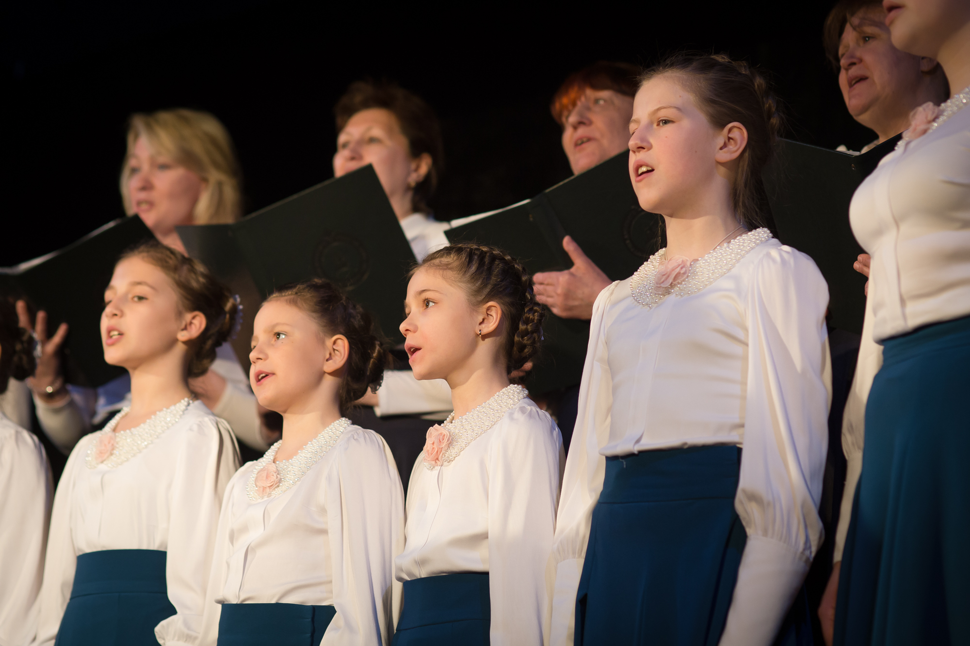 Затем к Пасхальному поздравлению присоединились маленькие хористы – участники подготовительного хора вокально-хореографического ансамбля «Восход». Этим юным артистам всего по пять-шесть лет, и занимаются в Школе искусств они только первый год. В их исполнении прозвучала песня «Бог живой» (слова Константина Бальмонта, музыка Людмилы Ершовой) и ещё несколько озорных весёлых песен, представленных с таким старанием и детской непосредственностью, что на лицах многих взрослых зрителей заиграли улыбки.