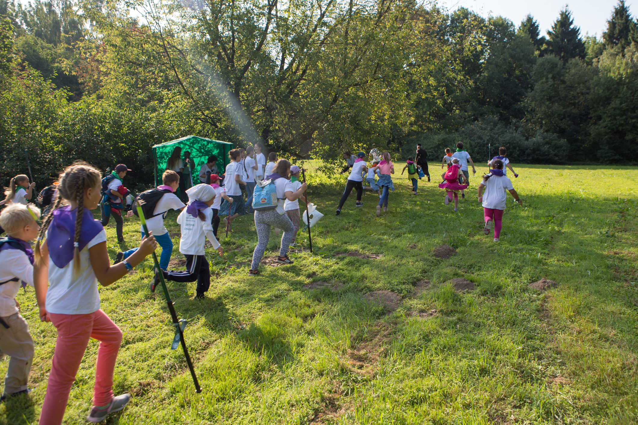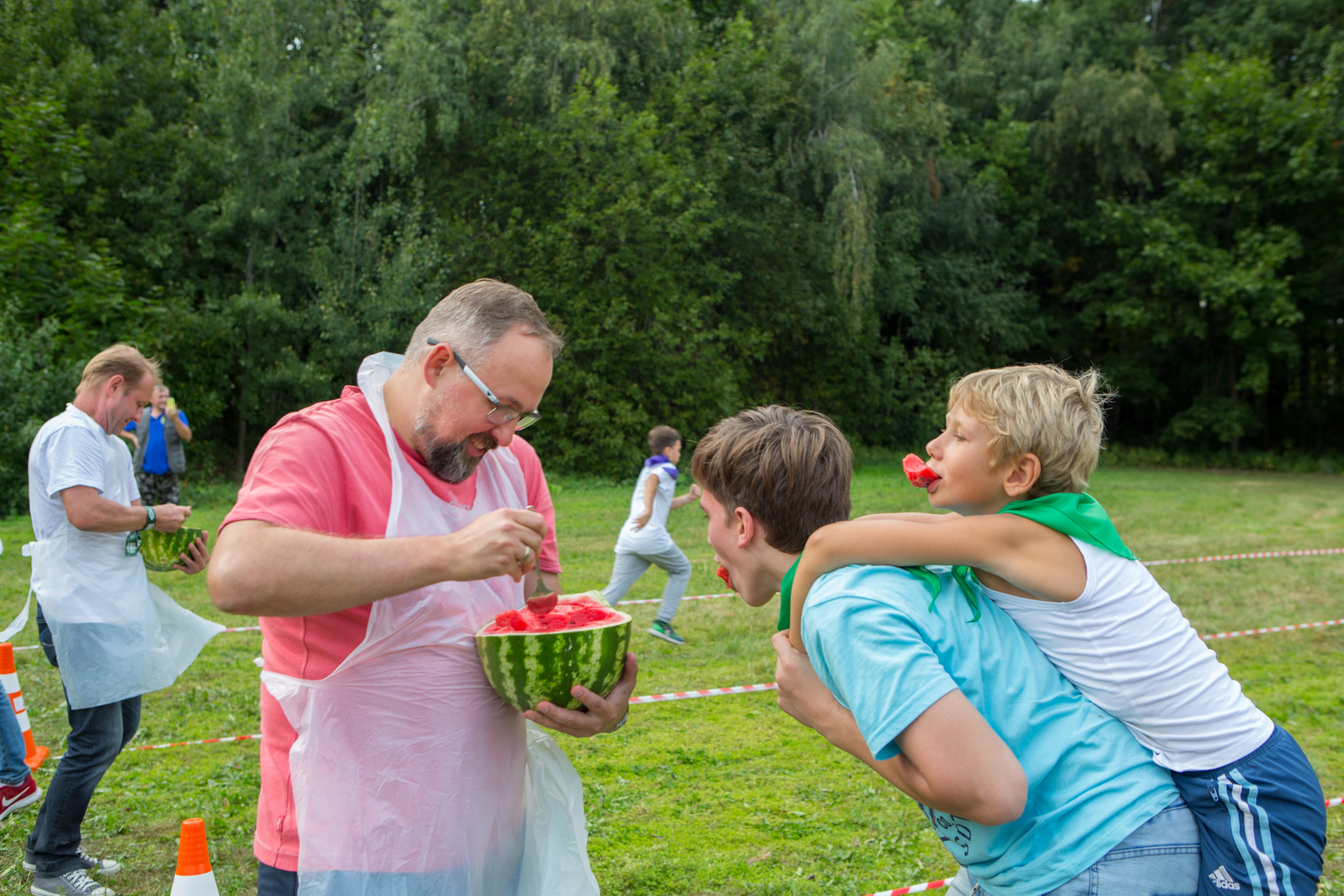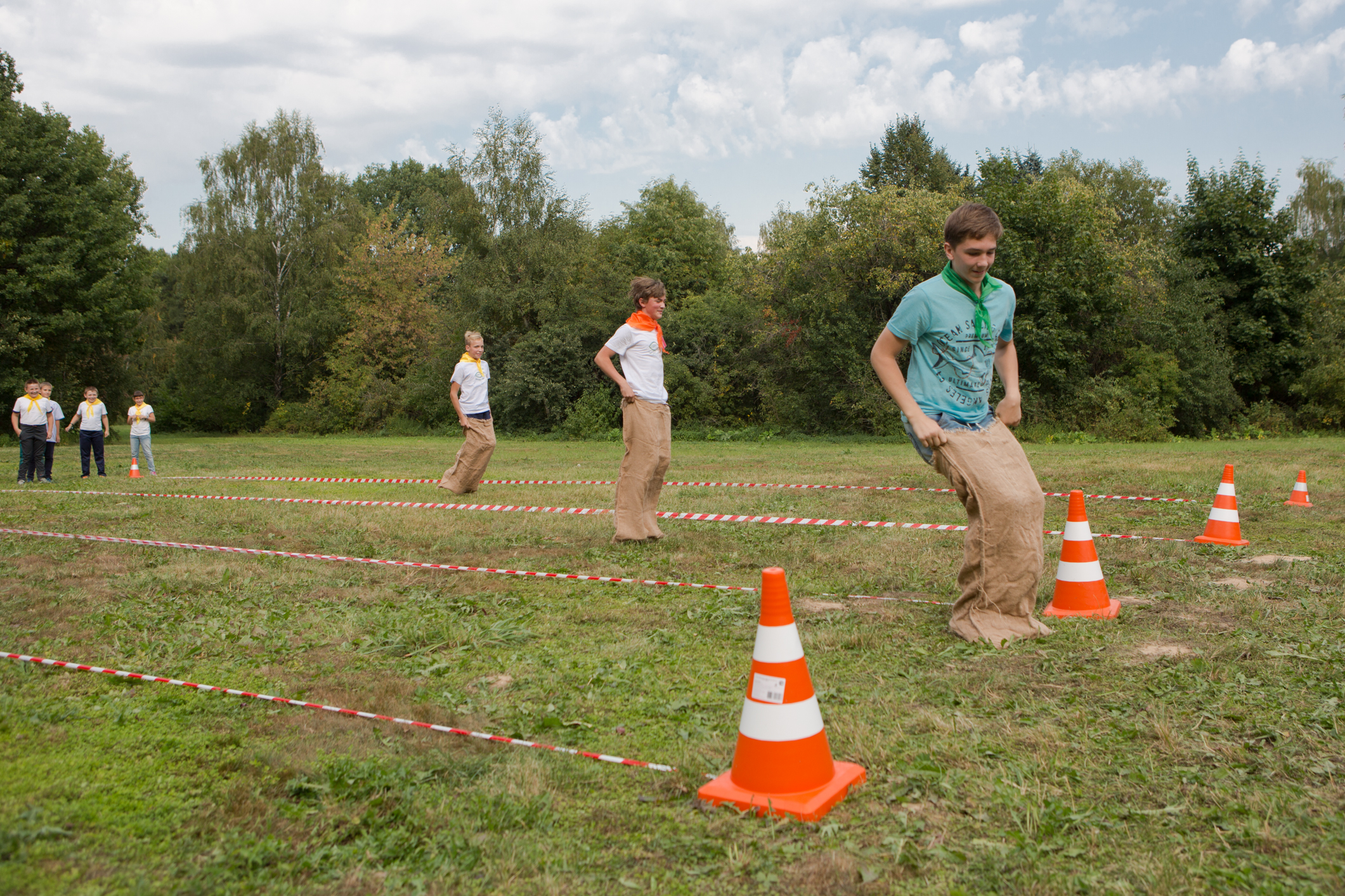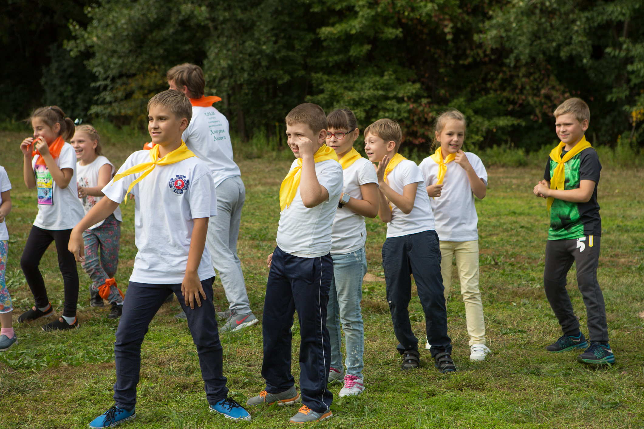 Потом ребят ждал знатный обед – уха от шеф-повара Никиты Мартынова, сосиски на гриле, пирожки, салат и сладкие пирожные на десерт. Ну, а затем ещё были песни под баян, весёлые эстафеты, спортивные конкурсы и общее фото на память!