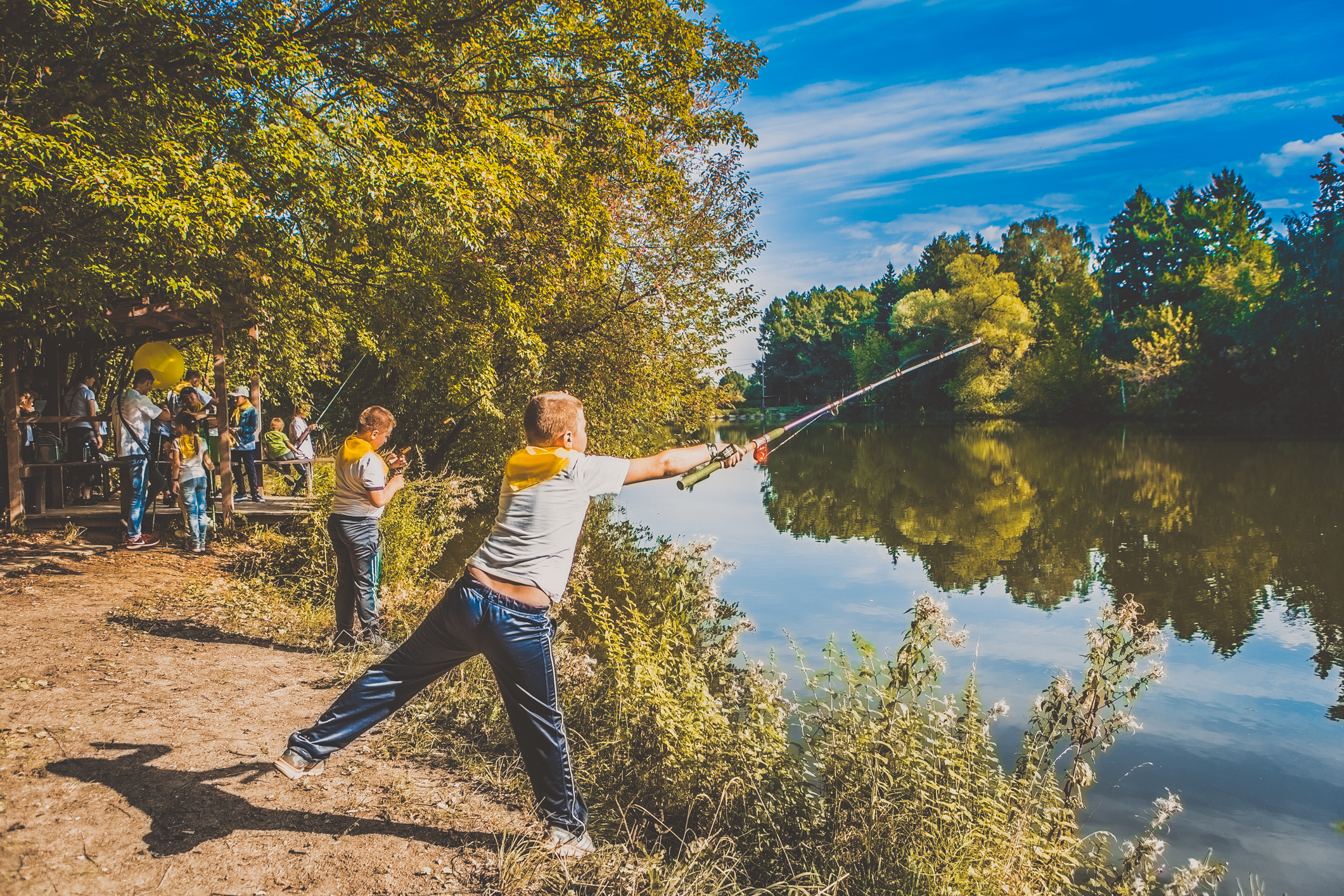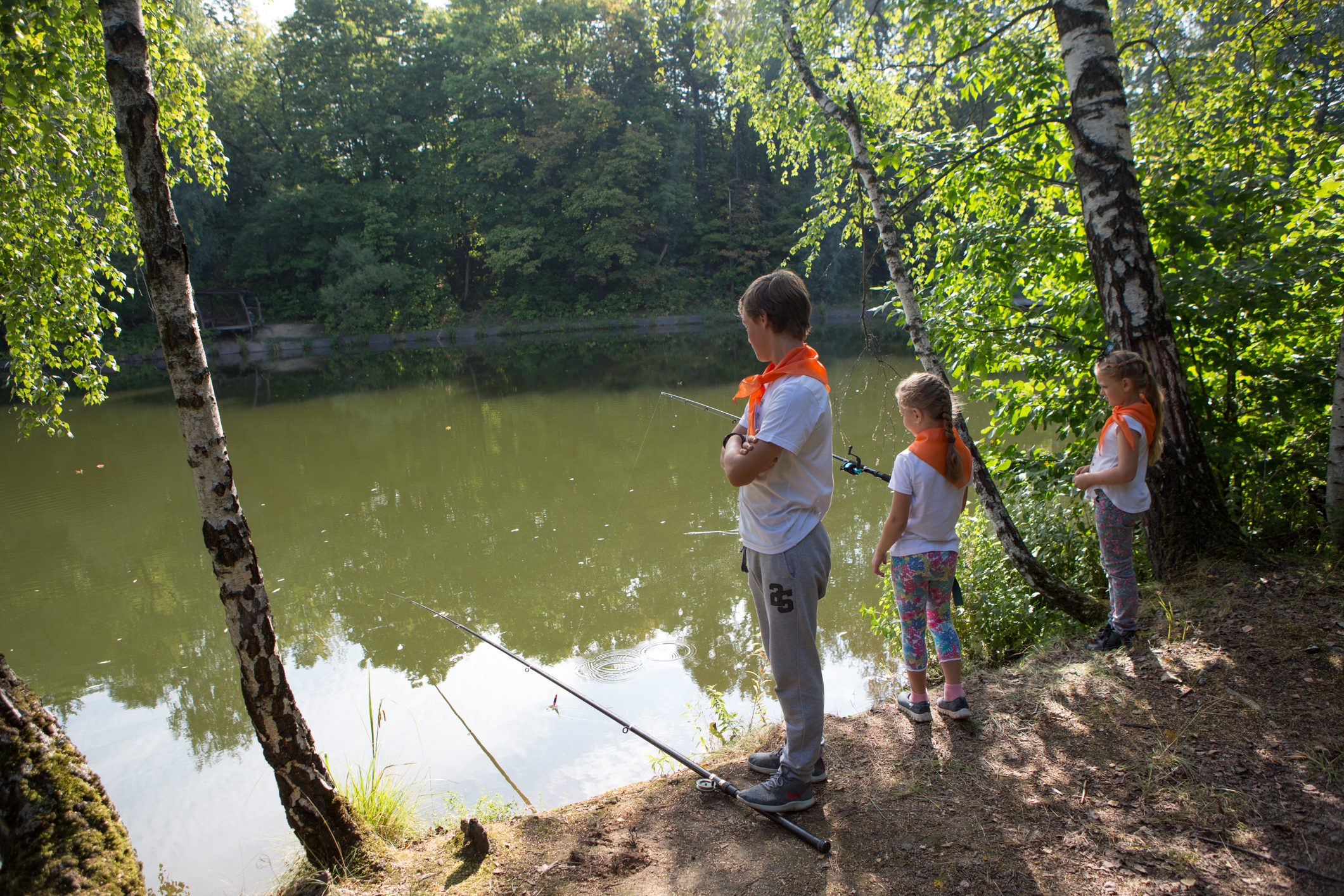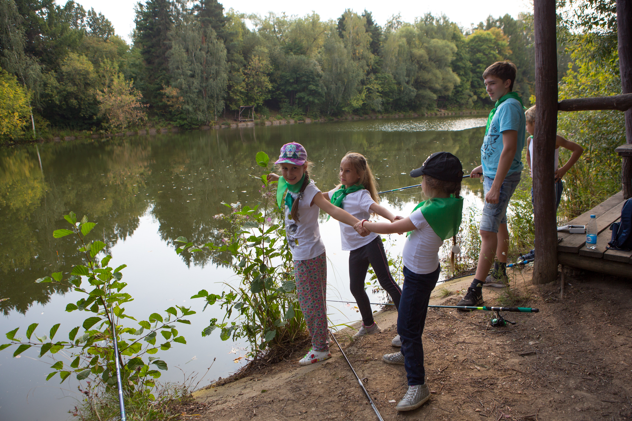 После завтрака, накрытого в большой беседке на берегу пруда, ребята вооружились удочками и побежали к воде. Собирали удочки, цепляли наживку, забрасывали крючки с воодушевлением: конечно, каждой команде хотелось поймать как можно больше рыбы и занять первое место! В итоге после двухчасовой ловли результаты выглядели следующим образом: