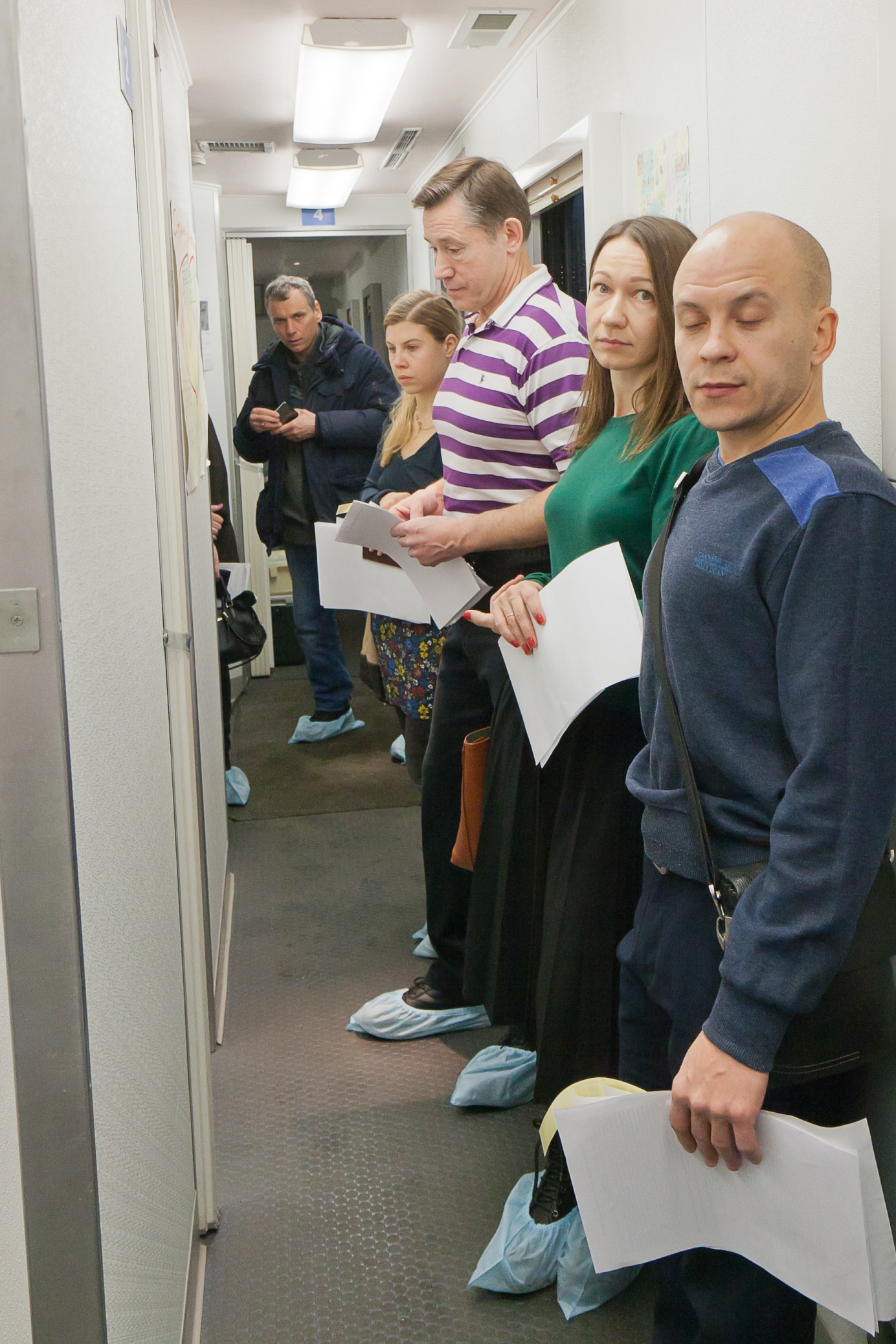 Как и год назад, у ворот Подворья отважных доноров ждала большая красно-белая машина мобильной станции по сбору крови. Желающим принять участие в акции полагался сладкий чай с пирожками, после чего предстояло заполнить анкету донора и пройти медосмотр – побеседовать с врачом и сдать кровь из пальца на экспресс-анализ. При отсутствии противопоказаний, получив положительное заключение доктора, добровольцы направлялись уже непосредственно к донорским креслам.