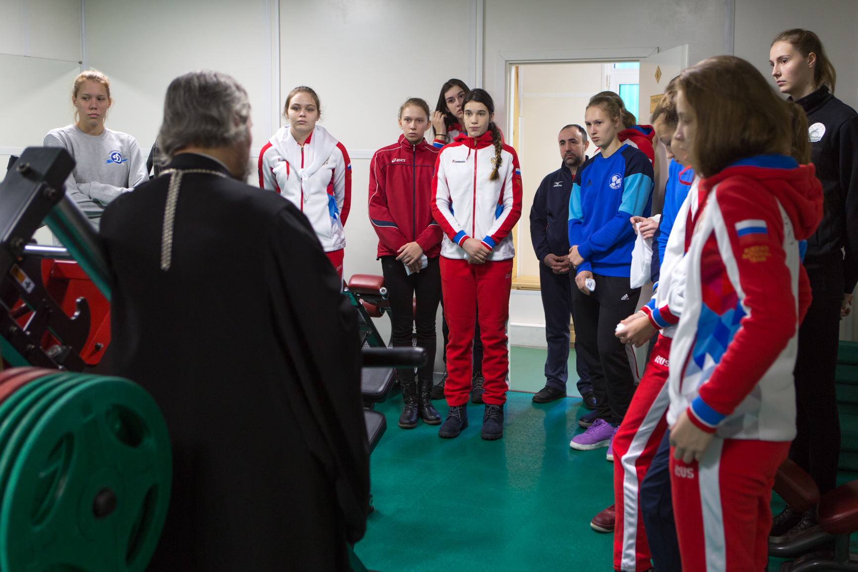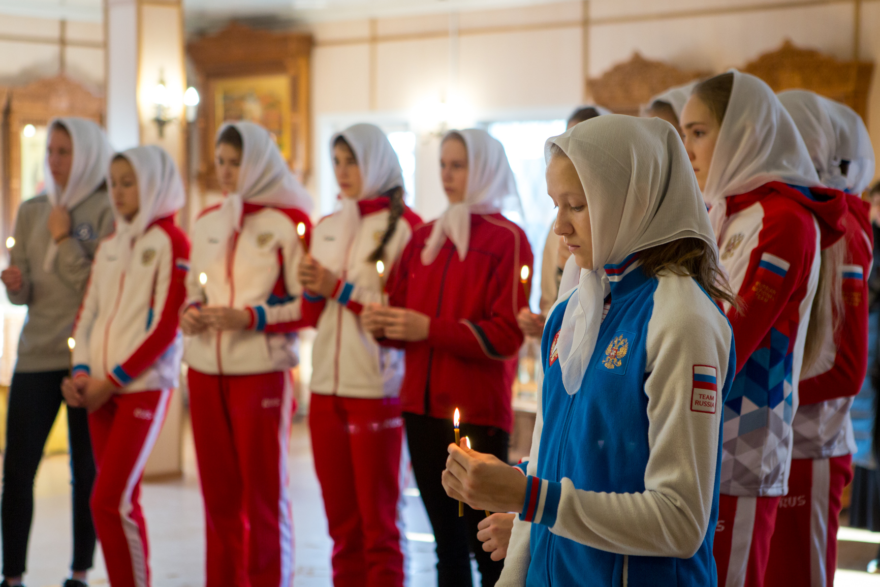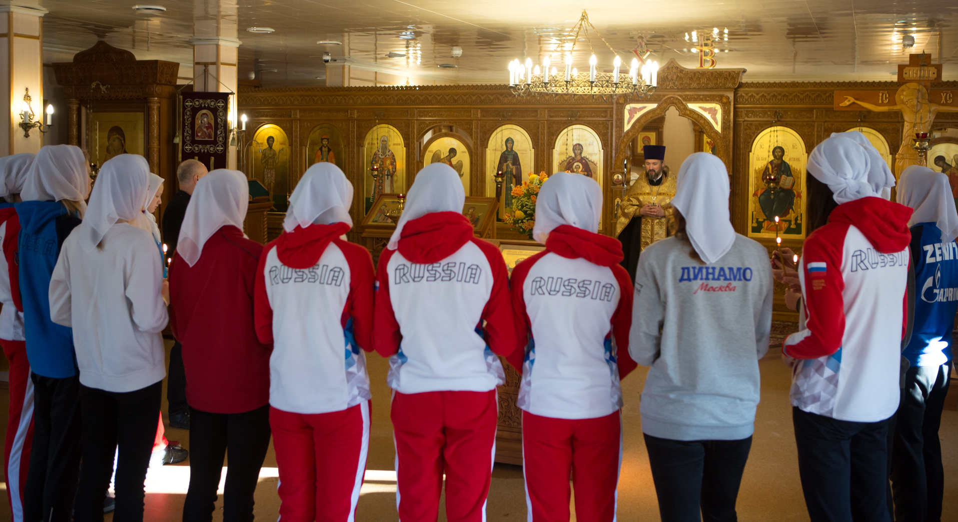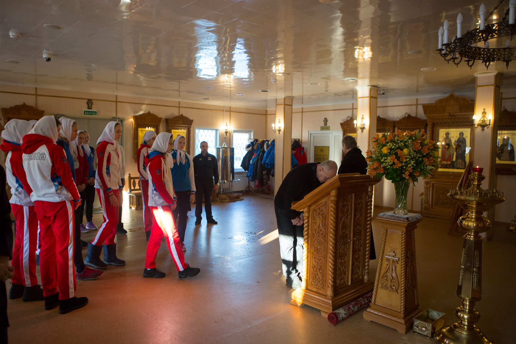 Тёплые дружеские отношения и духовное взаимодействие между волейболистками, их наставником, заслуженным тренером России Александром Викторовичем Кариковым, и настоятелем Подворья, протоиереем Андреем Алексеевым, духовником Олимпийской сборной России, продолжается уже на протяжении полутора лет, с XIV Европейского юношеского Олимпийского летнего фестиваля в венгерском городе Дьёр, где команда впервые познакомилась с отцом Андреем. За прошедшее с тех пор время визиты сборной к нам на Подворье стали уже доброй традицией: девушки приезжают перед важными турнирами – помолиться и попросить у Господа укрепления и помощи на соревнованиях, а также после выступлений – поблагодарить за полученную поддержку.