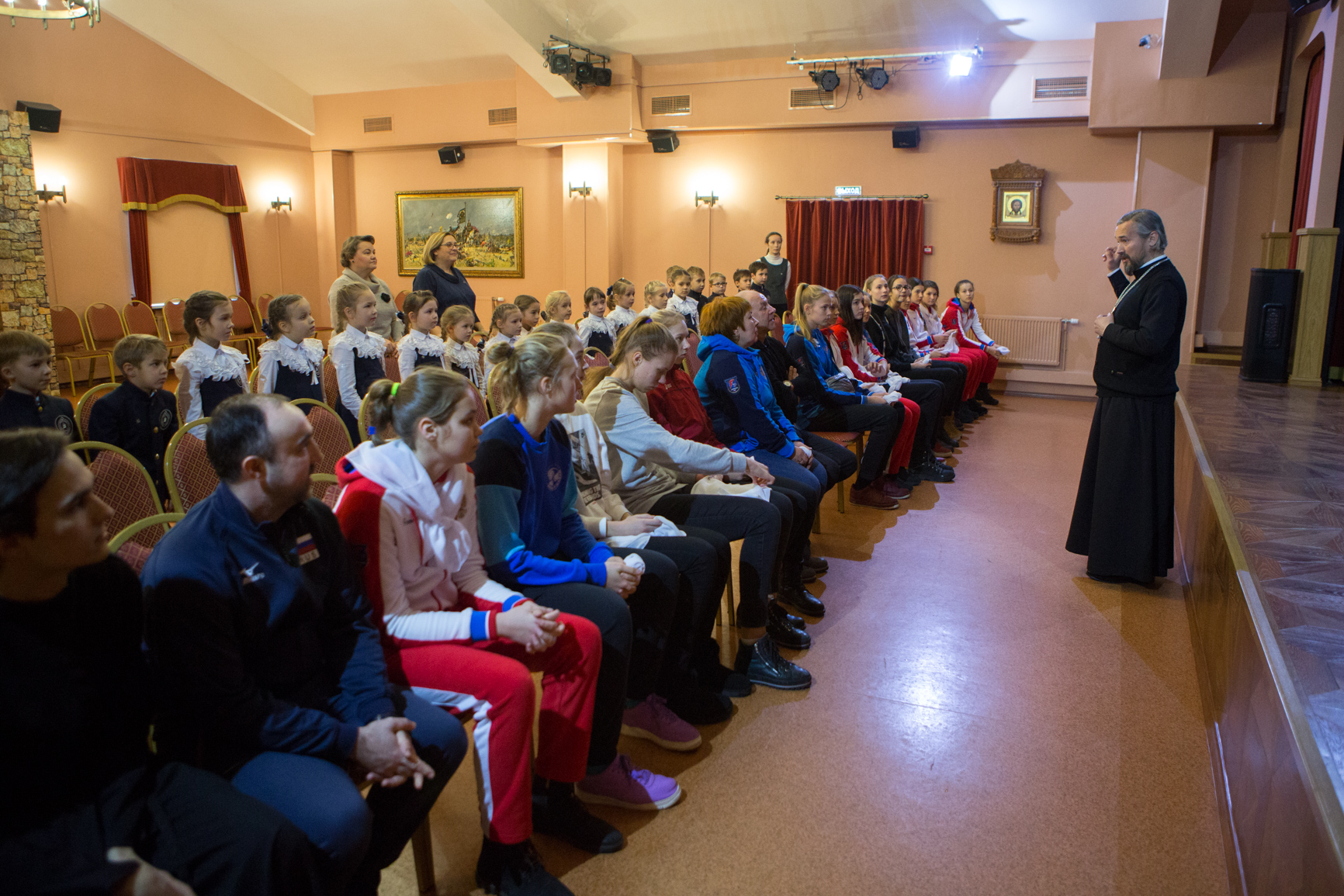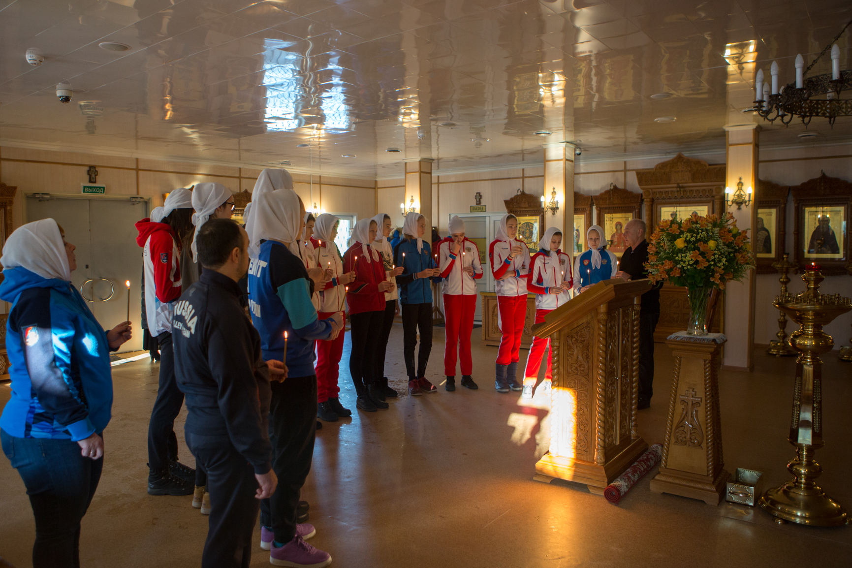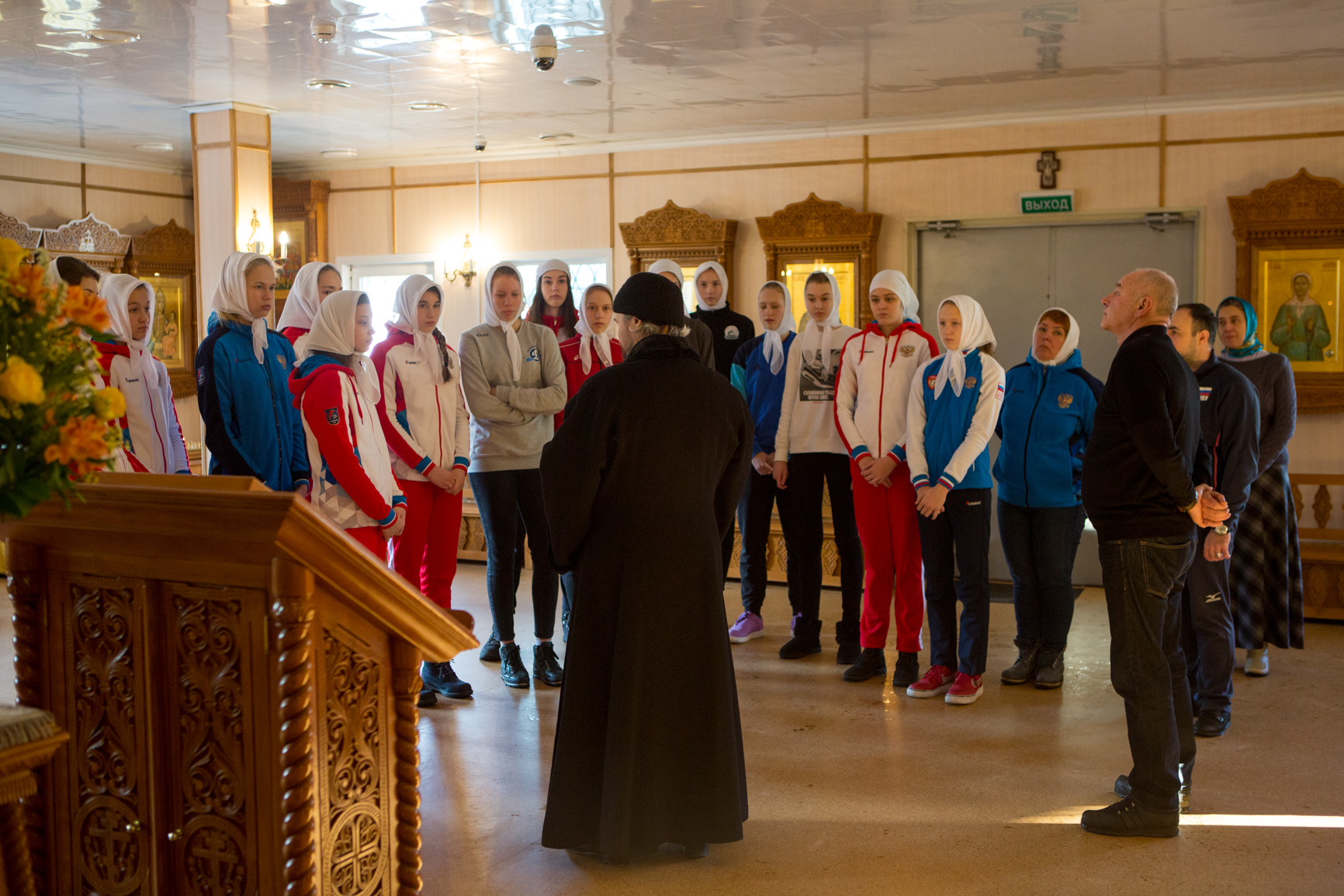 По обычаю, спортсменки приняли участие в молебне, с паперти храма выпустили в небо белых голубей, прошли с экскурсией по территории Подворья, посмотрели небольшой концерт, подготовленный силами наших гимназистов, а потом пообщались с батюшкой за трапезой. И, конечно же, получили душеполезные подарки на память!