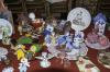 Хочется отдельно отметить представленных на выставке кукол – даму и мужчину, героев начала прошлого столетия, изготовленных в технике «скульптурный текстиль» в стиле «бром-портрет» (черно-белое изображение). Автор этой занимательной пары, Рита Куранова, рассказала, что куклы изображают брата и сестру на морском отдыхе. Сестра в длинном платье, в шляпе, а брат в костюме – вальяжный, сидит в кресле. На первый взгляд кажется, будто лица кукол вылеплены из твёрдого материала, но на самом деле они сделаны из капрона, набитого синтепоном. Для того, чтобы изобразить нос, глаза, улыбку и вообще живую мимику, необходимо ниткой с иголкой сделать стежок в определенном месте и закрепить его узелком, поэтому эту технику называют «узелковой». Каким тонким чутьём и вкусом, какими деликатными руками необходимо обладать, чтобы с помощью капрона, синтепона и нитки с иголкой суметь выразить на лице дамы доброту, мудрость, смирение и грусть по поводу несостоявшейся женской доли, а на лице мужчины – чувство собственного достоинства, бывалость и даже бахвальство.