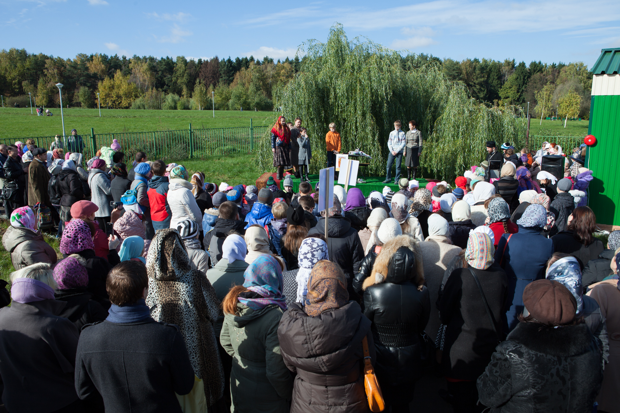 После Литургии и молебна о начале учебного года весь народ (человек четыреста) высыпал из храма на улицу. Людей много – пестрит толпа яркими, разноцветными детскими курточками; все радуются теплому воскресному дню, все – в ожидании чего-то чудесного, светлого. Солнечные лучи, соревнуясь с улыбками, играют на детских и родительских лицах. Наконец раздается колокольный перезвон, торжественно звенит первый настоящий звонок, который продолжается колокольным звоном и после молитвы «Царю Небесный» начинается первый – и потому необычный, весёлый и праздничный – урок нашей новой воскресной школы: прямо на улице, возле храма, при всеобщем собрании не только маленьких, но и больших наших прихожан.