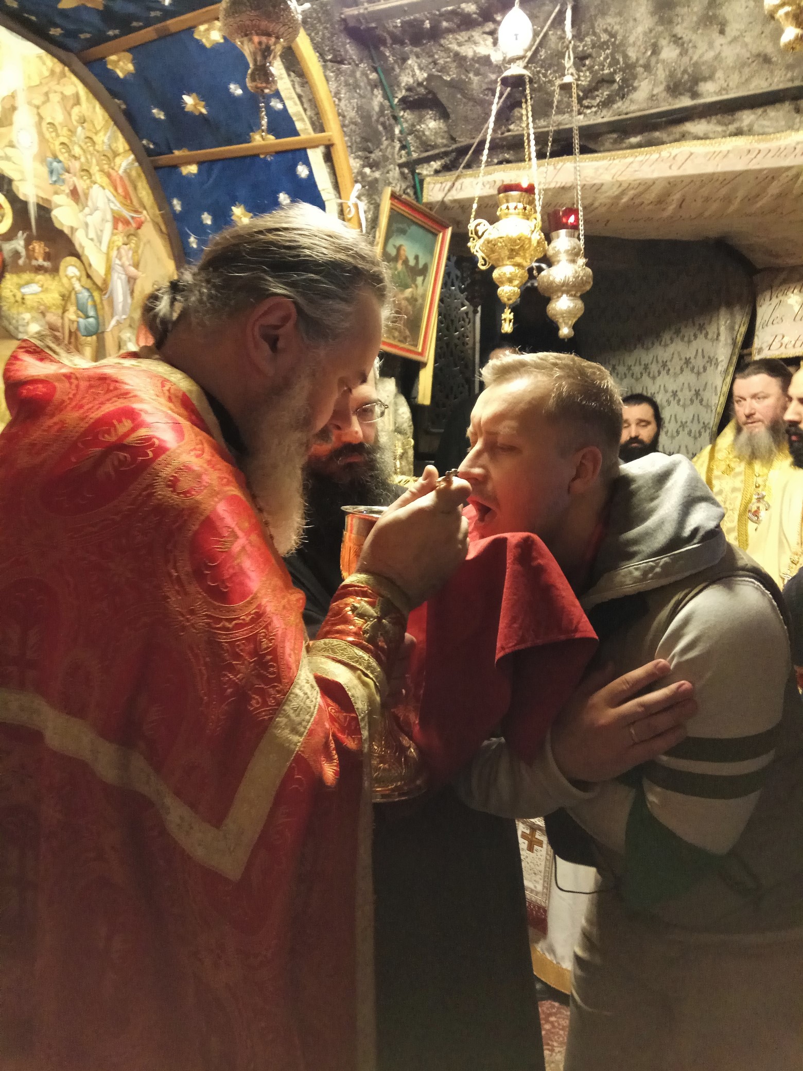 Первая наша Литургия в храме Рождества в Вифлееме на второй день паломничества. Именно здесь для меня начала зарождаться та самая незримая связь. Одной из наших паломниц становится плохо, и мы, стоящие рядом, сплачиваемся вокруг неё, и в этом порыве физически ощущается мощный поток любви, заботы и готовности защитить, хотя тогда мы ещё не знаем даже имён друг друга. Бог есть Любовь, и она так щедро изливалась на каждого из нас всю последующую неделю – через трогательную отеческую заботу Батюшки и его главных помощников, через поданную руку при выходе из автобуса, подставленное плечо, уступленное место, сказанное участливое слово и понимающий взгляд ближнего. И ещё была общая радость, которую отмечали даже люди со стороны.