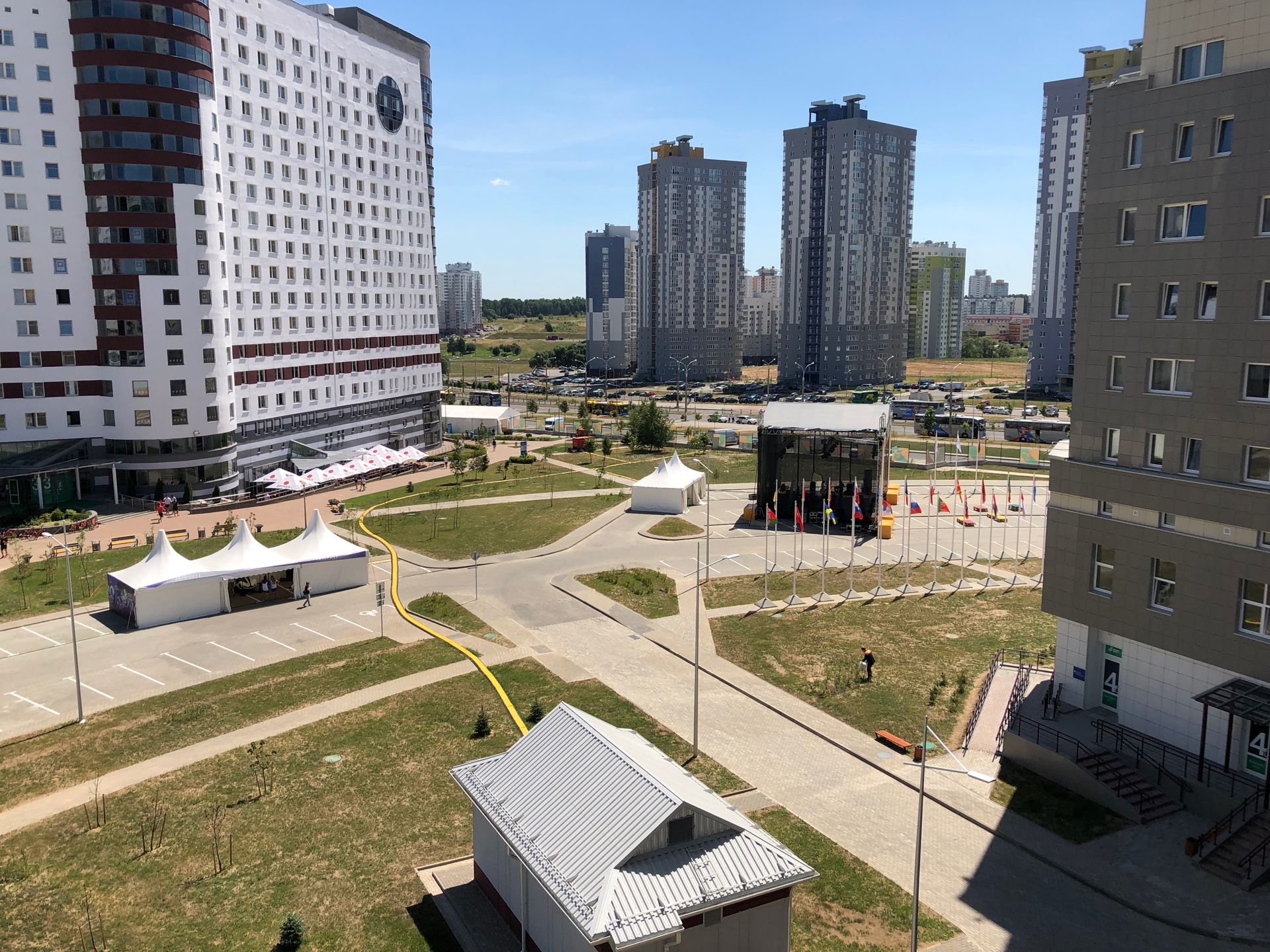 Возвращаясь в часовню, в коридоре я встретился с двумя ребятами, Александром и Анатолием, которые обеспечивают техобслуживание здания. Мы разговорились, и от них я узнал, что строительство студенческого городка, где разместилась олимпийская деревня, было заморожено на протяжении семи лет, а потом, когда Беларусь получила право провести игры, весь городок был достроен в течение года.