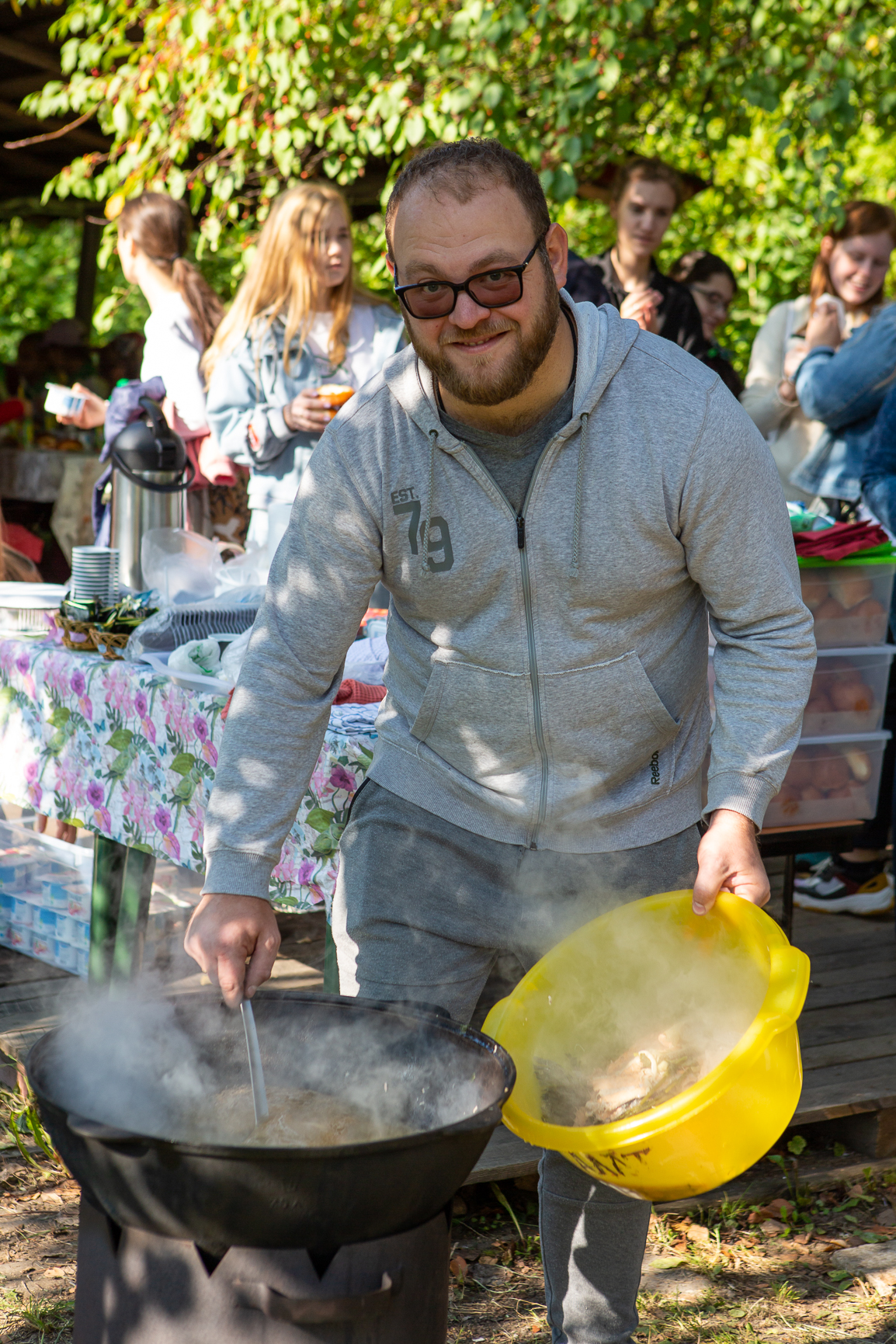 Затем был вкусный завтрак в беседке на берегу пруда, после чего команды отправились рыбачить. Кому-то повезло больше, кому-то меньше, но в конечном счёте улов поделили поровну, так что всё равно победила дружба. Далее для подкрепления сил рыбаков ждал обед – традиционная наваристая уха, жаренные на углях сосиски и сладкие пирожные на десерт. А потом начались весёлые эстафеты и конкурсы, завершившиеся всеми любимым соревнованием по поеданию наперегонки арбуза!