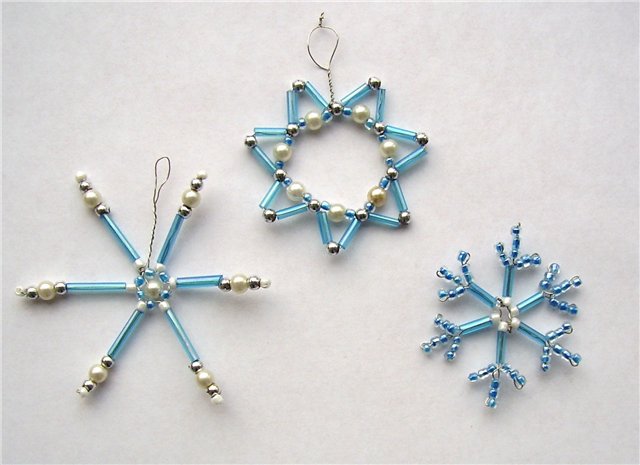 * На фотографиях – примерные образцы новогодних поделок из бисера и бумаги.