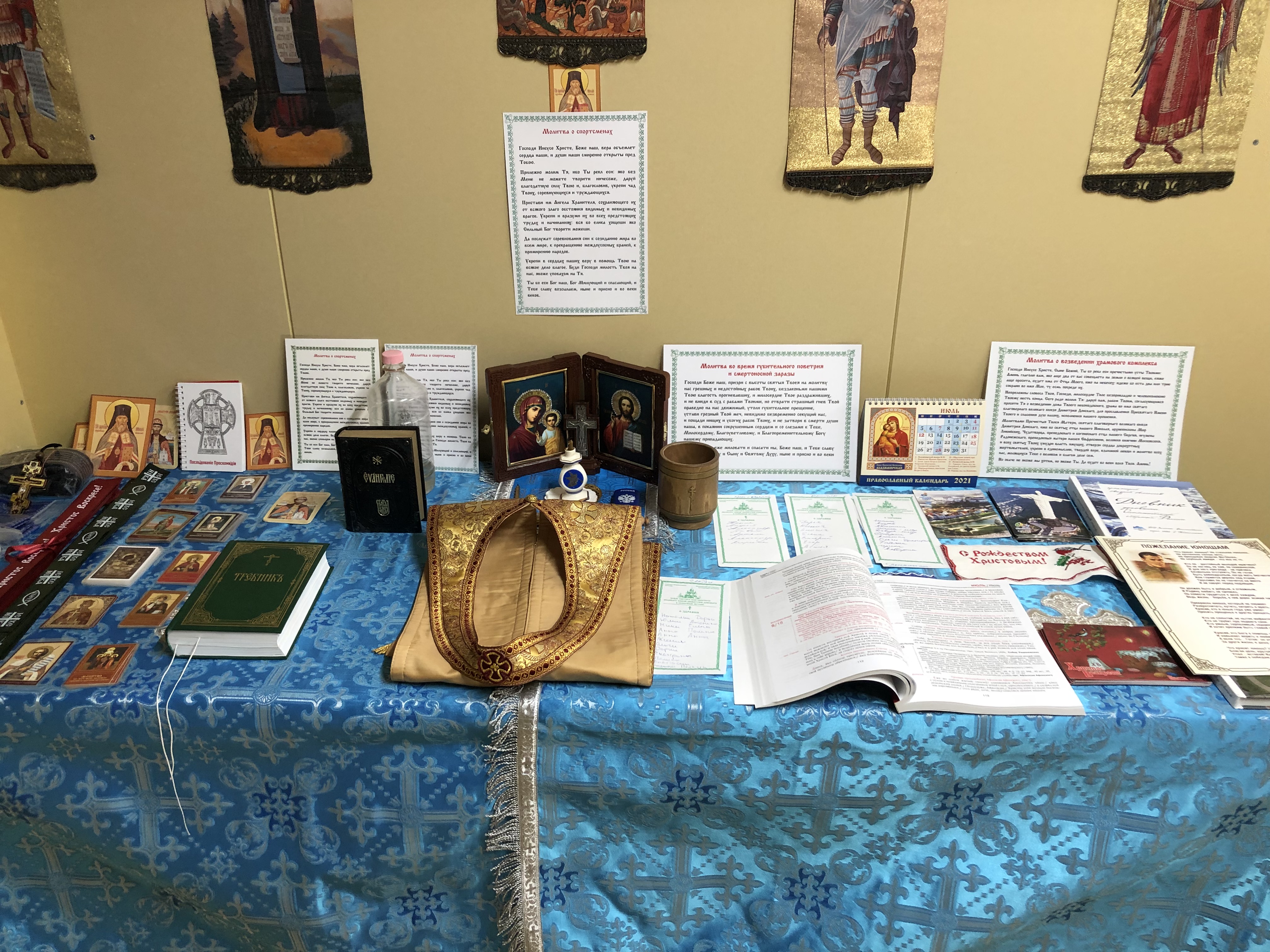 Процесс обустройства часовни всегда занимал немалое время. Так было и в этот раз: ведь все предметы необходимо распаковать, разложить, развесить, а предварительно всё это нужно представить себе и хорошо продумать.
