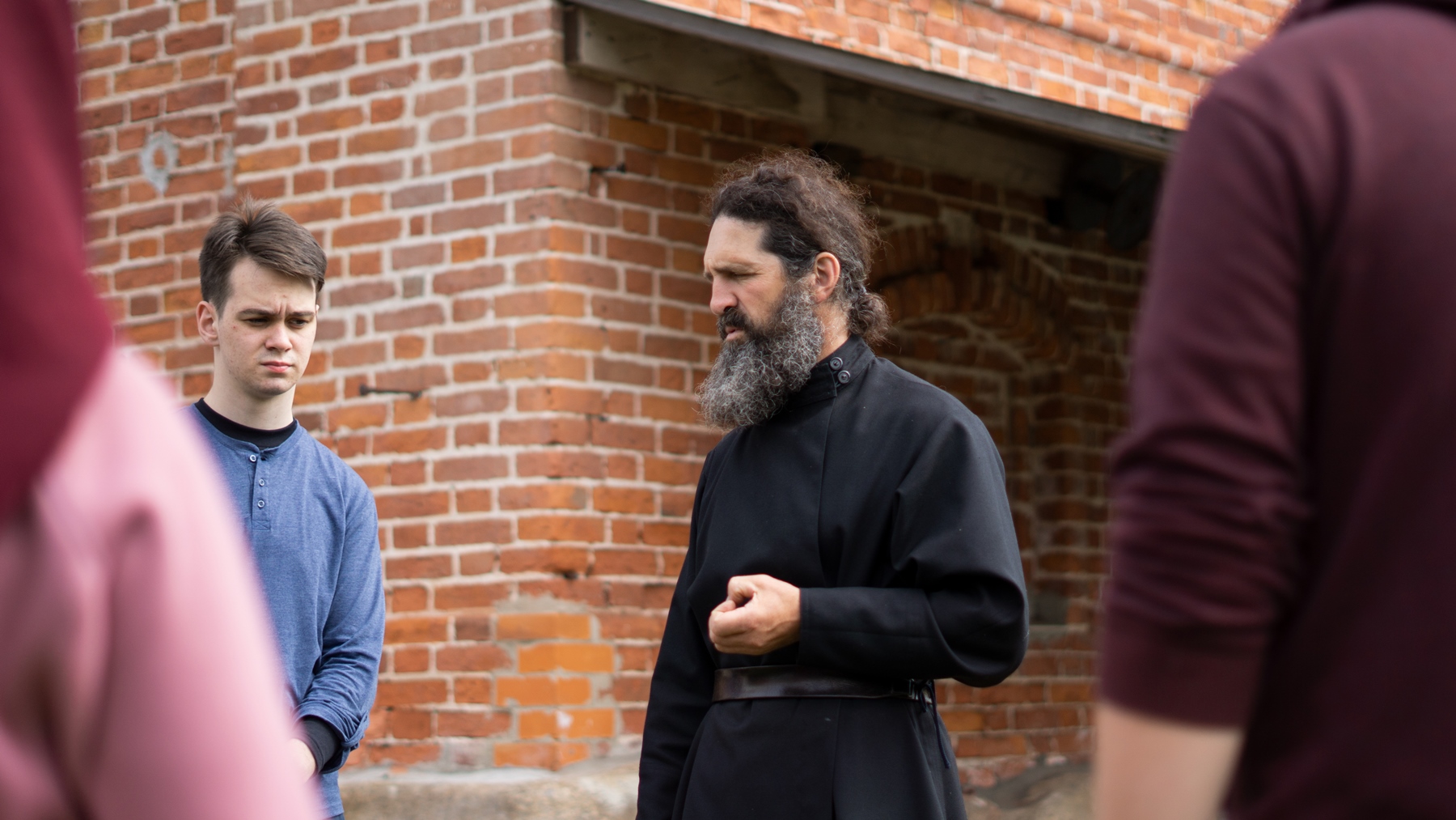 В скиту нас тепло принял отец Иаков, заселил в уютный домик и дал всем основные послушания, которые мы должны были выполнять на протяжении всего пребывания в Савватьево. Мы молились, трудились, а в конце дня ходили в стоящую на берегу озера баню. Там мы познакомились с Даниилом, приехавшим к отцу Иакову потрудиться из поселка, и потом он нам помогал на протяжении всей поездки.