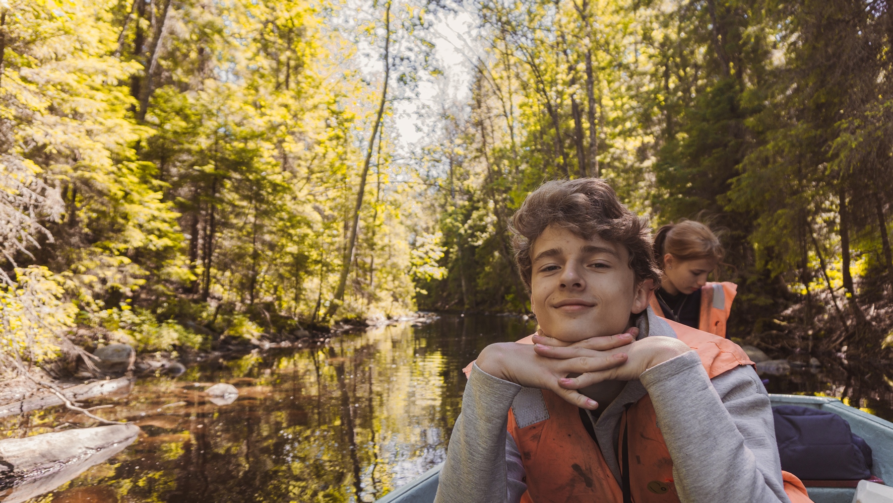 С двух сторон лодку окружали лишь вода и берега с зелёной листвой деревьев, которая шумно шелестела на ветру. А капли мелкого начинающегося дождя оставляли на воде расплывающиеся между кувшинками круги. Группа весело перекрикивалась друг с другом с разных сторон реки, и наш смех разносился эхом по простору.