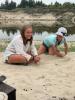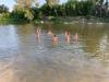На второй день к нам пришли коровы. 11-летний крестник отца Анатолия, Ваня, пошёл «доить» коров, но, вернувшись, сообщил нам, что коровы уже подоены. В этот же день Ваня и два сына отца Анатолия, Клим и Глеб, решили сплавать на другую сторону реки. Там был отвесный берег, но они нашли посередине реки небольшой остров, полностью состоящий из глины и тины. Наша палатка стояла на возвышении, оттуда открывался очень красивый вид на реку и лагерь, и ребят было очень хорошо видно. Мы смотрели на них, и можно было подумать, что они в водолазных костюмах: все в тине измазались! На этой же стоянке я купалась и нашла много мидий. Я выстроила их в ряд и устроила соревнование: кто из моллюсков первым приползёт к финишу.