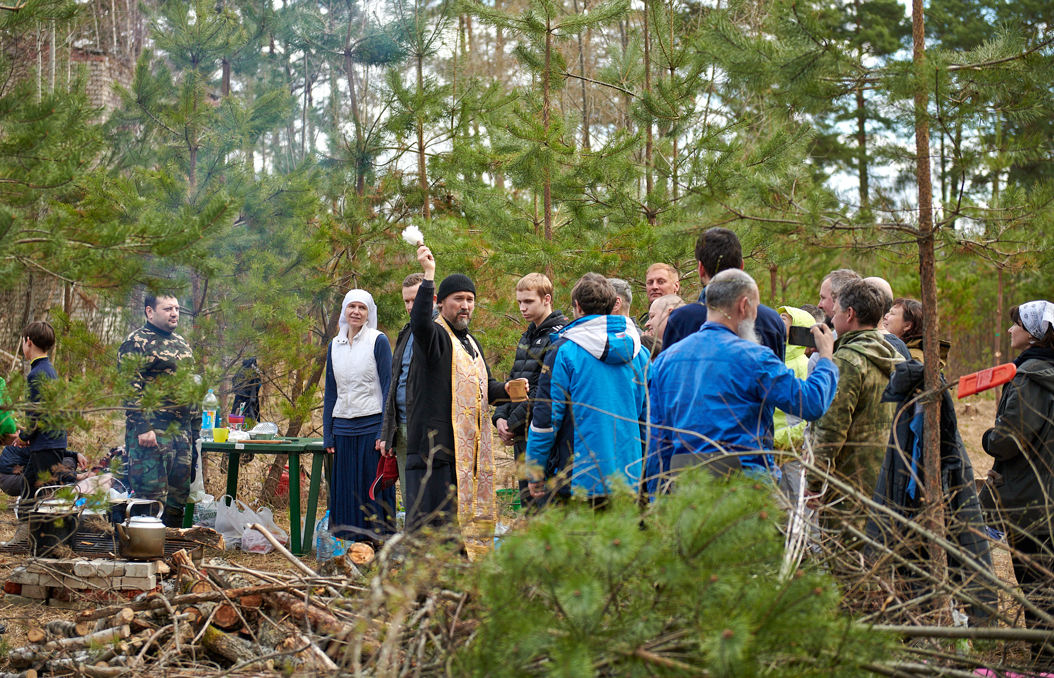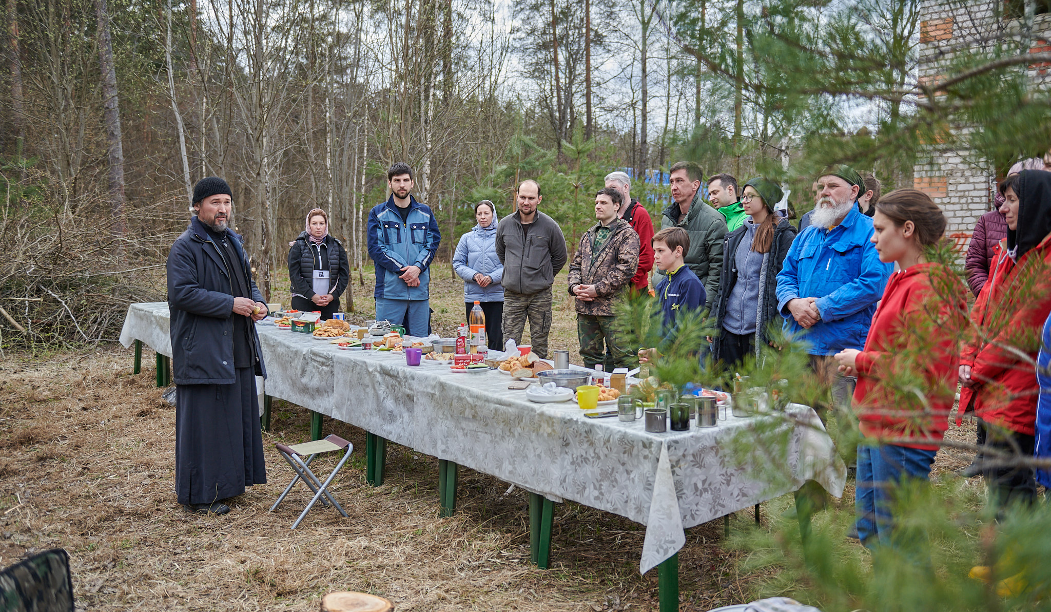 Работа по подготовке летней смены уже началась: в минувшую субботу, 30 апреля, мы группой в пятьдесят человек взрослых совершили первый трудовой выезд на эту территорию и в течение всего дня, с раннего утра и до вечера, прилагали свои усилия, чтобы привести участок в надлежащий для предстоящего летнего мероприятия вид. И этот день, проведённый вместе за общим делом, подарил нам огромную радость от совместного труда, замечательной трапезы и вечернего Богослужения под открытым небом.
