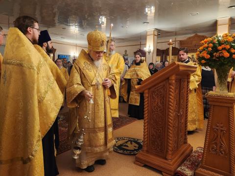 После чтения Евангелия епископ Пантелеимон обратился к священникам и прихожанам с проповедью, призывая всех верующих к чтению Священного Писания и деятельному служению в Церкви. Владыка говорил и о том, как важно для каждого из нас продолжать своё движение ко Христу, помня о той великой радости, к которой все мы призваны, и не пугаться встающих перед нами на этом пути трудностей, ибо они необходимы каждому человеку и даются свыше для совершенствования в терпении, смирении, стойкости и молитве.