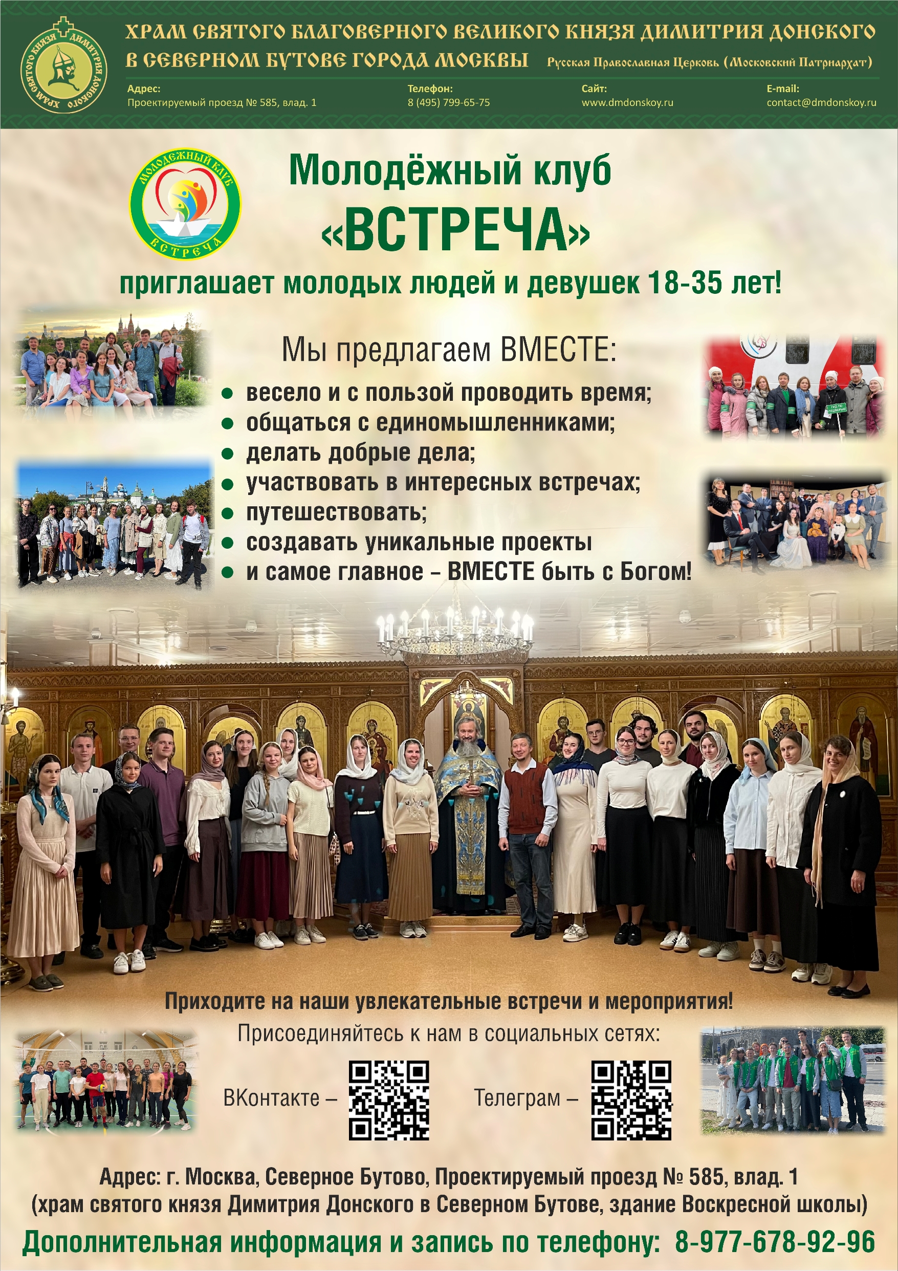 Молодёжный клуб «Встреча», объединяющий молодых людей в возрасте от 18 до 35 лет, приглашает в свои ряды новых участников!
