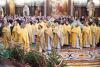 Богослужение возглавил митрополит Истринский Арсений – первый викарий Святейшего Патриарха, управляющий Центральным и Южным викариатствами города Москвы. Сослужили ему ключарь храма Христа Спасителя протоиерей Михаил Рязанцев, руководитель Отдела религиозного образования и катехизации г. Москвы иеромонах Онисим (Бамблевский), настоятель нашего храма – председатель Комиссии по церковному просвещению и деятельности воскресных школ при Епархиальном совете г. Москвы иерей Андрей Алексеев, а также члены Комиссии, ответственные за воскресные школы в столичных викариатствах, и гости кафедрального собора. Помогали в алтаре, а также читали за Богослужением мальчики-пономари из разных храмов всех округов города, в том числе – и алтарники из нашего храма: Саша Грибенюк, Серёжа Емельянов и Петя Хлопков. Пели два детских хора – храма Христа Спасителя и храма Рождества Христова в Чернево – под общим руководством регента Ангелины Глуховой.