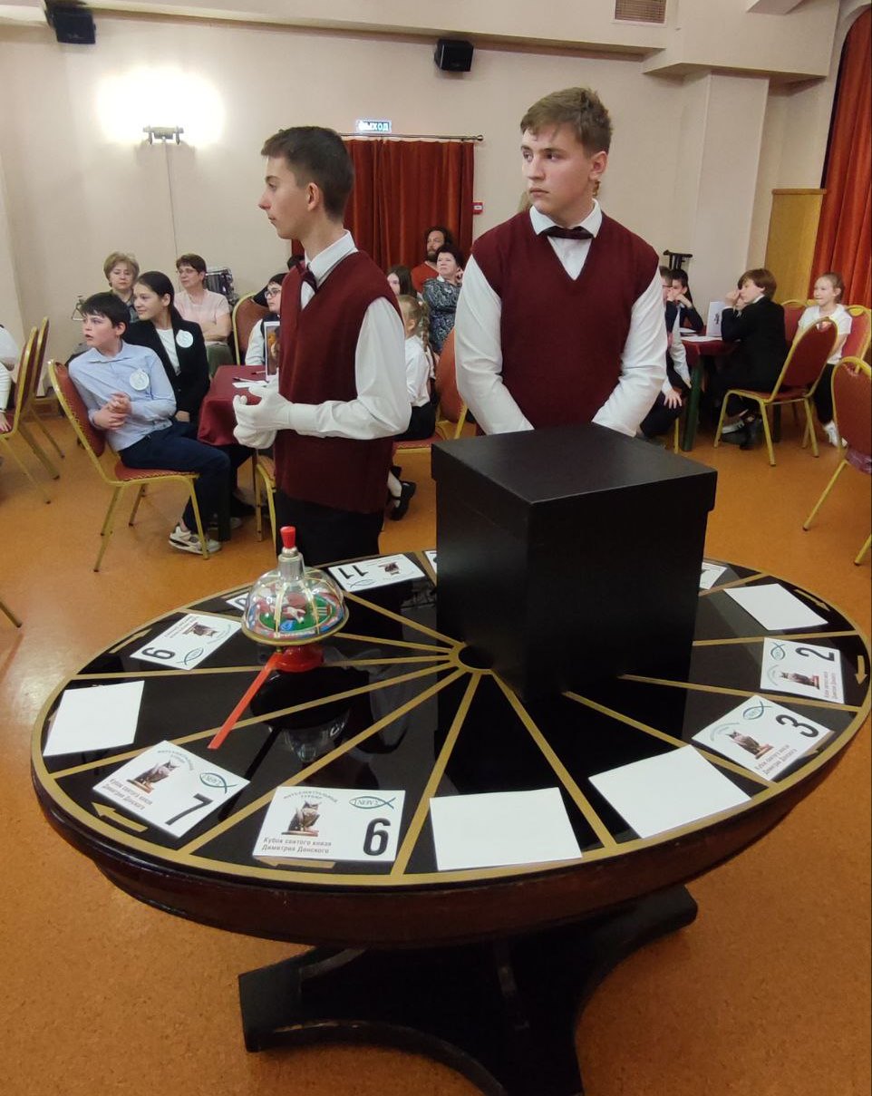 …Несётся стрелка волчка, определяя тему нового раунда; рокочет гонг, предвещая очередной вопрос. В зале царит атмосфера командного единения, тут и там вспыхивают оживлённые дискуссии и дружеские споры. Но вот время вышло, помощники относят карточки с ответами команд на стол жюри. Юные сердца трепещут в напряжённом ожидании. Члены жюри совещаются, задают ребятам уточняющие вопросы, внимательно их выслушивают и ставят баллы. Вновь звучит гонг, озвучивается верный ответ, и зал заполняется радостными криками. И вот уже следующий раунд, и снова крутится неутомимый волчок.