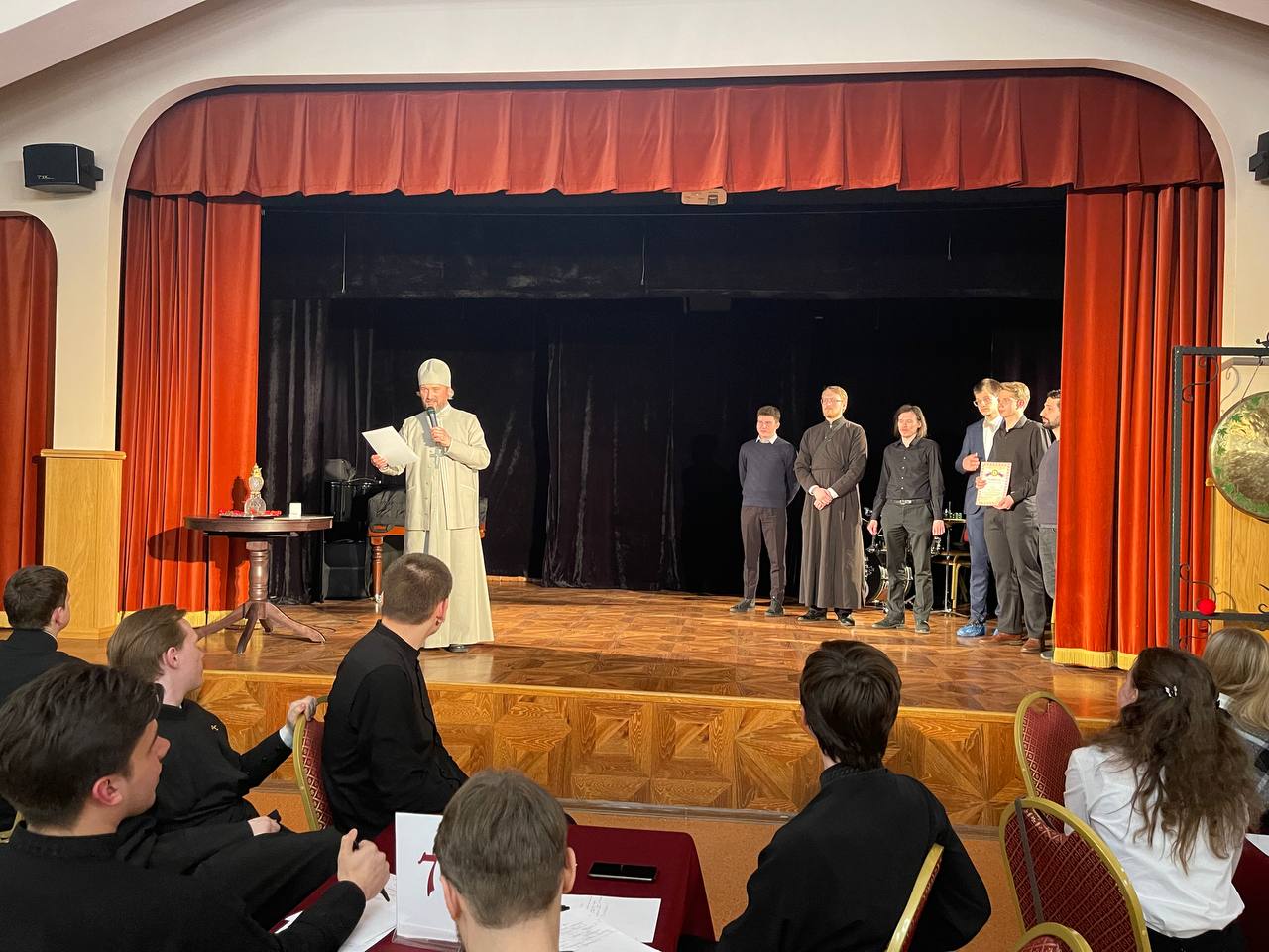 В воскресенье 30 апреля 2023 года в театрально-концертном зале «Восход» состоялся XIV Интеллектуальный турнир Что? Где? Когда? «Кубок святого князя Димитрия Донского», на котором традиционно собрались команды из духовных школ и православных вузов.