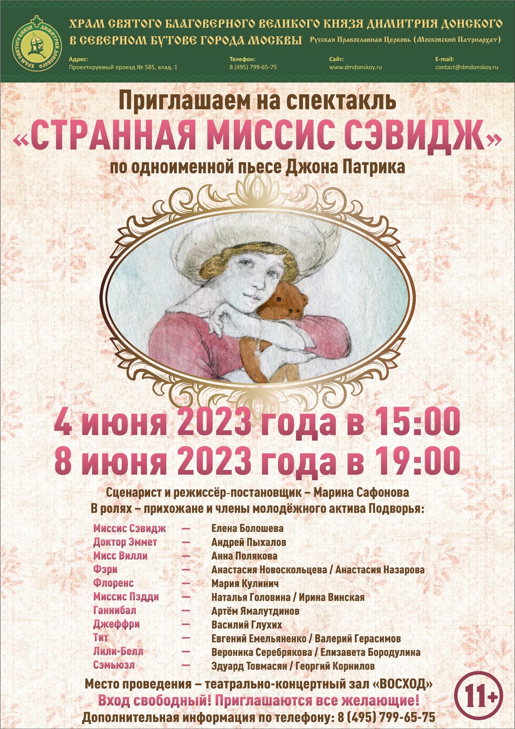 4 и 8 июня приглашаем на показ спектакля «Странная миссис Сэвидж»