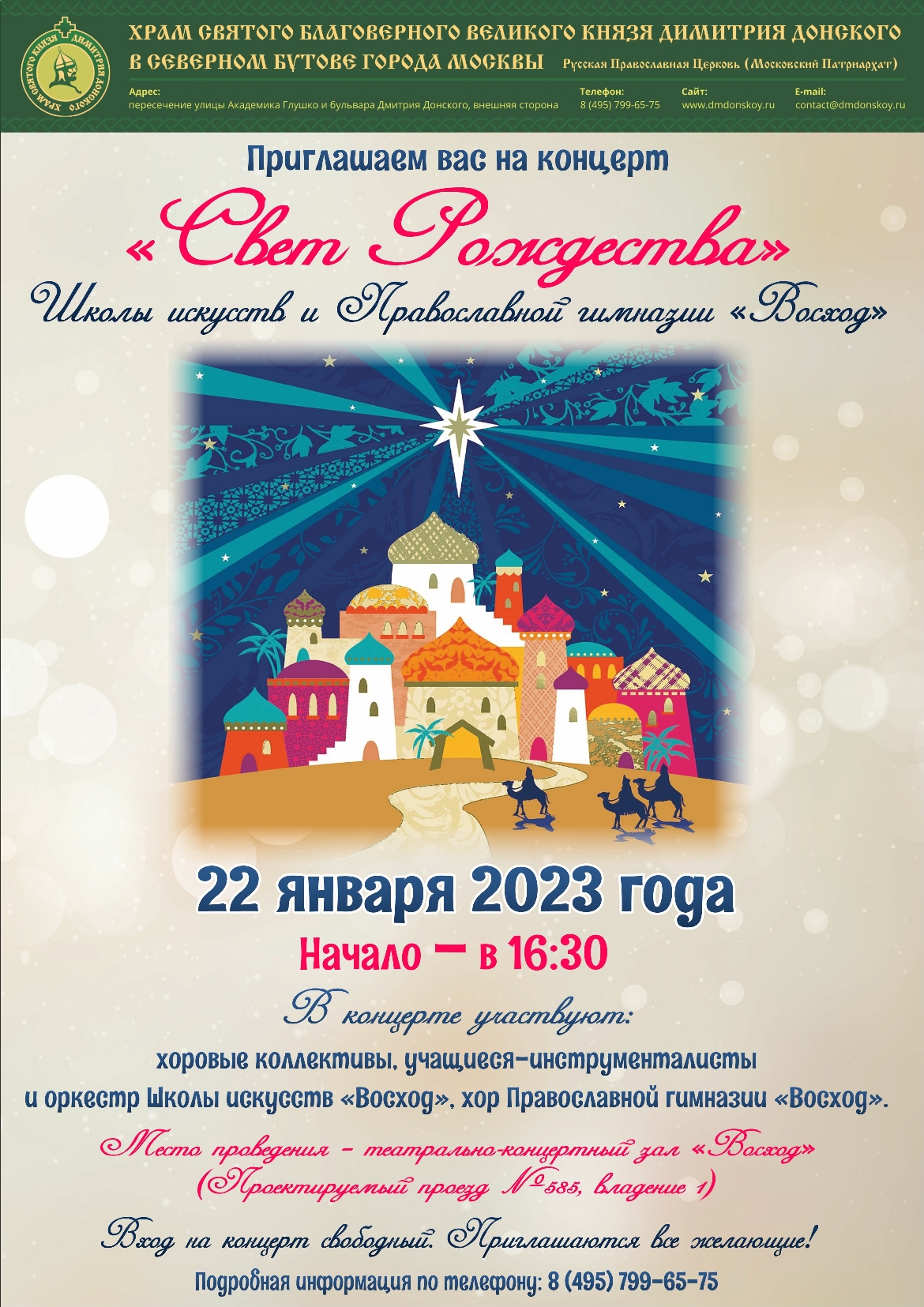 Предлагаем вашему вниманию видеозапись рождественского концерта «Свет Рождества», состоявшегося 22 января 2023 года в театрально-концертном зале «Восход».