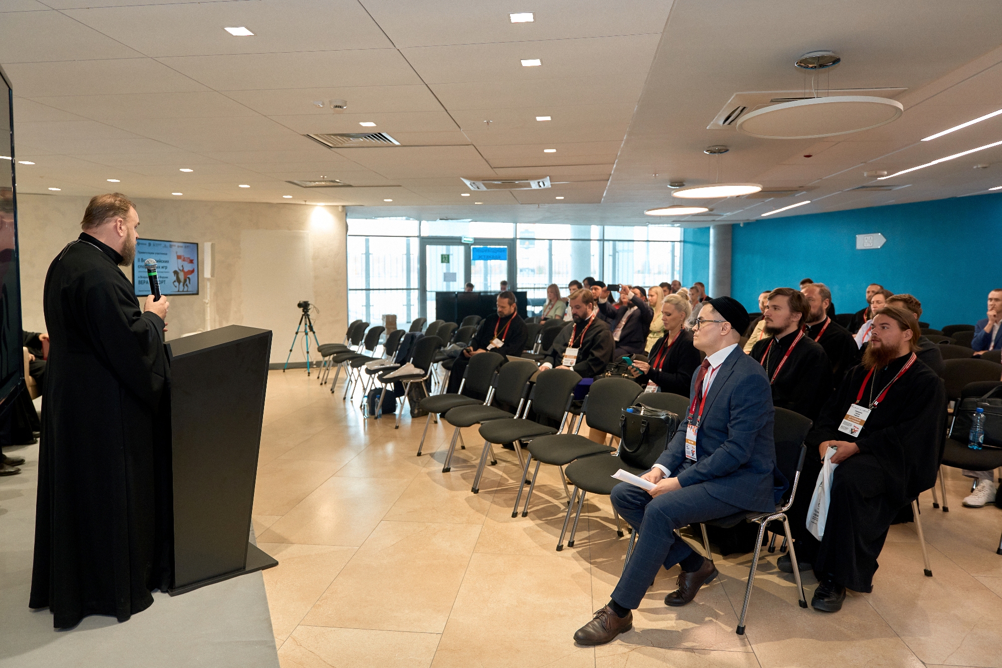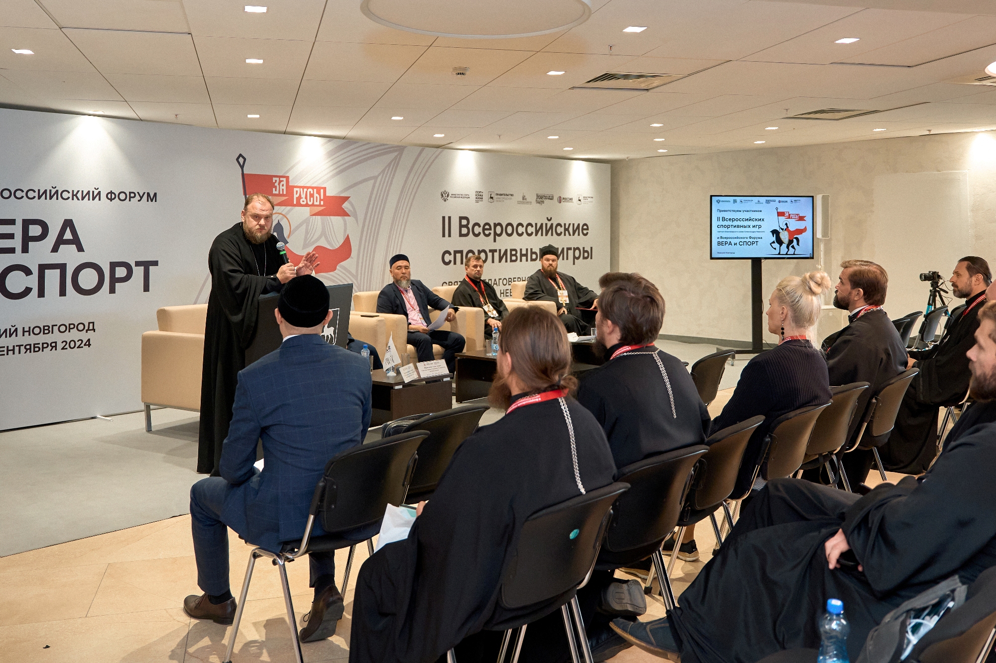 Настоятель нашего храма протоиерей Андрей Алексеев выступил в качестве ведущего и модератора пресс-конференции организаторов Игр. Затем на секции «Духовно-нравственное и патриотическое воспитание через спорт» отец Андрей представил доклад на тему «О деятельности спортивных, образовательных, культурных секций для детей и взрослых при храме святого благоверного великого князя Димитрия Донского в Северном Бутове города Москвы», в ходе которого рассказал об опыте просветительской работы с детьми и молодёжью в Культурно-образовательном центре «Восход», функционирующем у нас на Подворье, а также выступил спикером на секции «Современное российское олимпийское движение и сохранение традиционных ценностей» в рамках дискуссии на тему «Значение религии и веры для спортивных достижений».