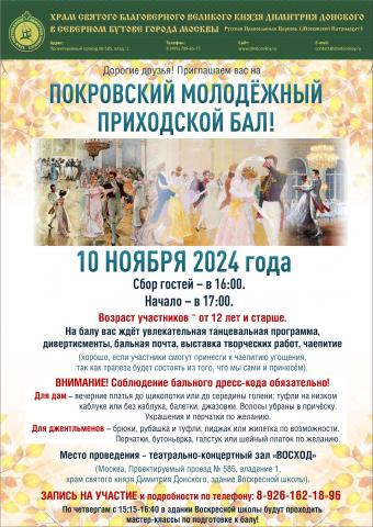 В воскресный вечер 10 ноября 2024 года приглашаем вас на Покровский молодёжный приходской бал!