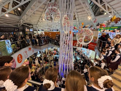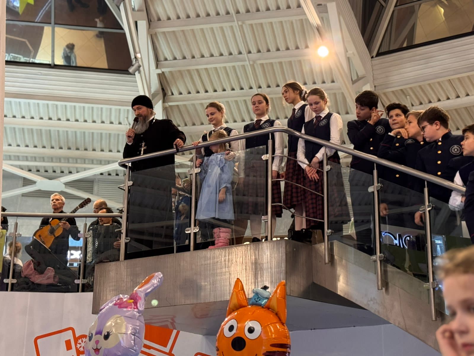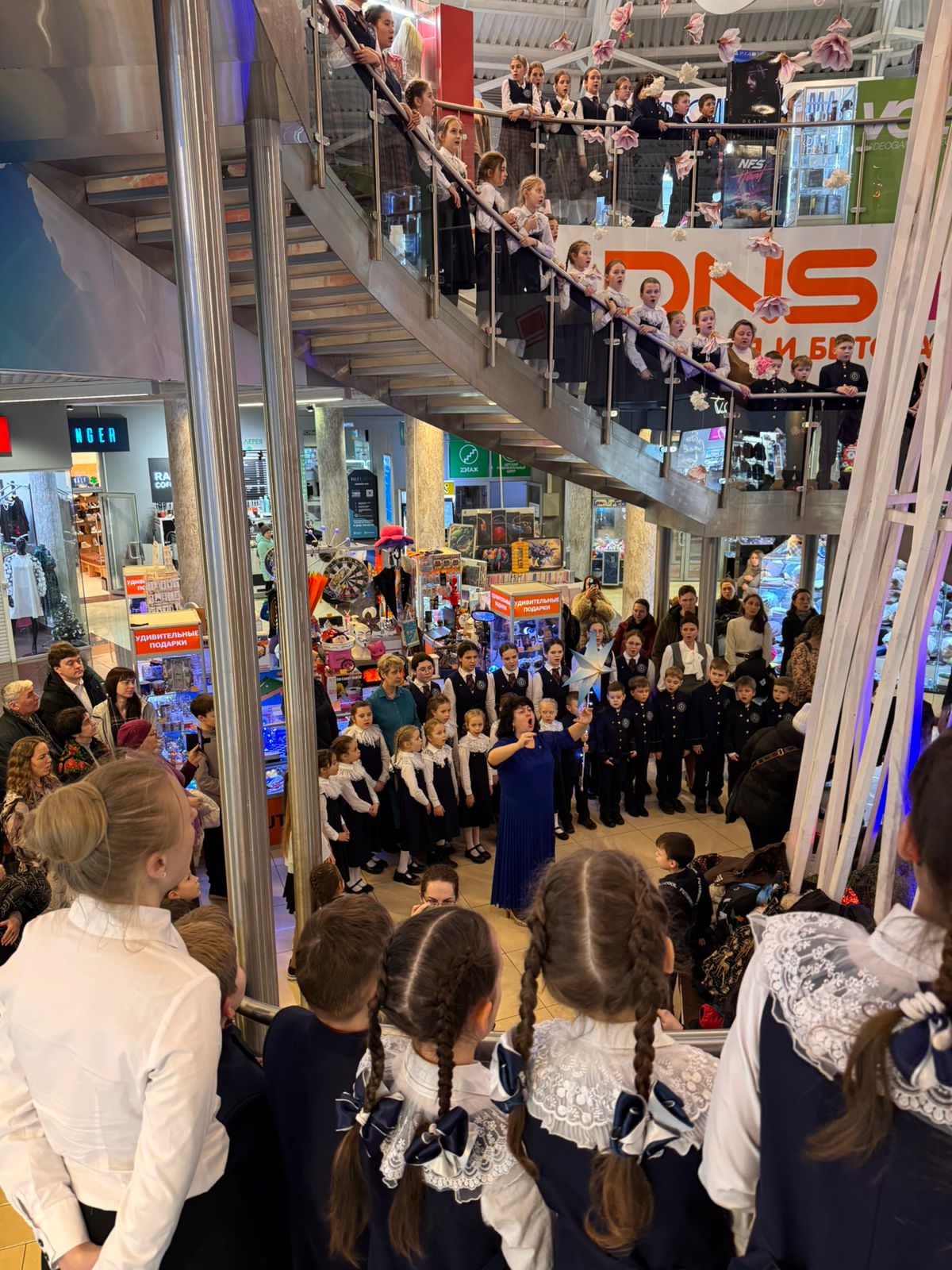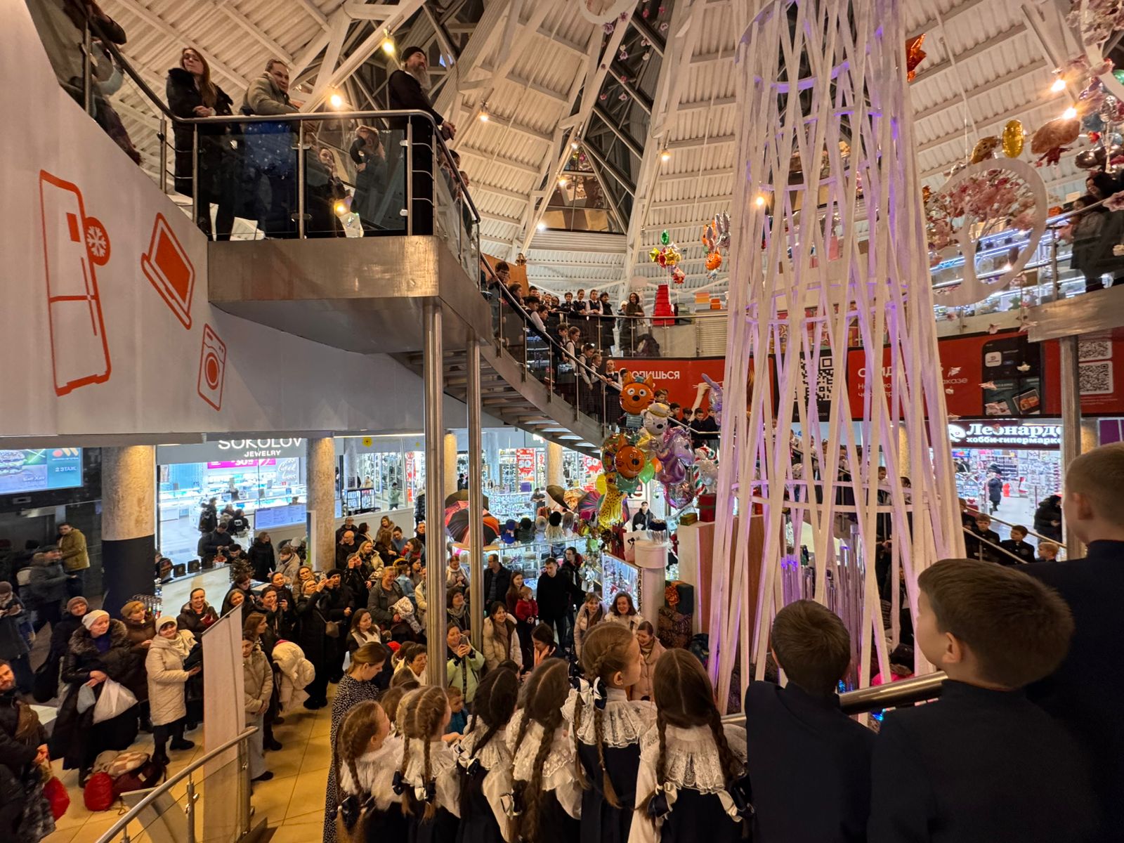 Гимназисты исполнили тропарь Рождества Христова, рождественские колядки и детские песни. Сотрудники ТЦ и покупатели с интересом и удивлением наблюдали за происходящим, а по окончании этого нежданного представления долго с улыбками аплодировали ребятам.