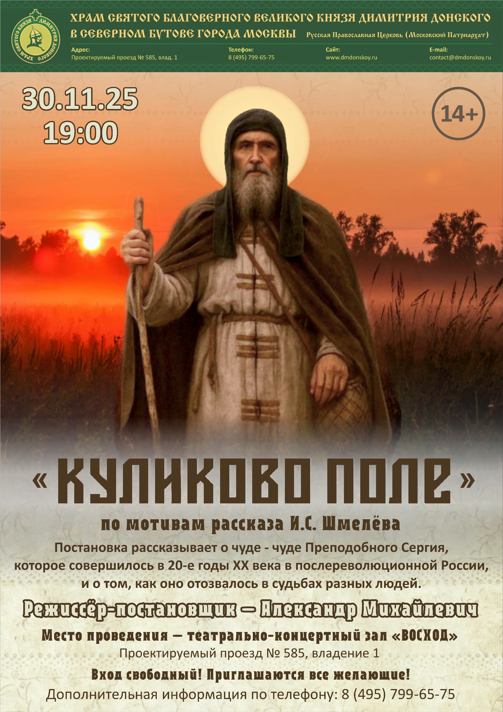Протоиерей Андрей Алексеев: После гастрольного показа в Крыму на нашей сцене вновь спектакль «Куликово поле»! Приглашаем 30 ноября!